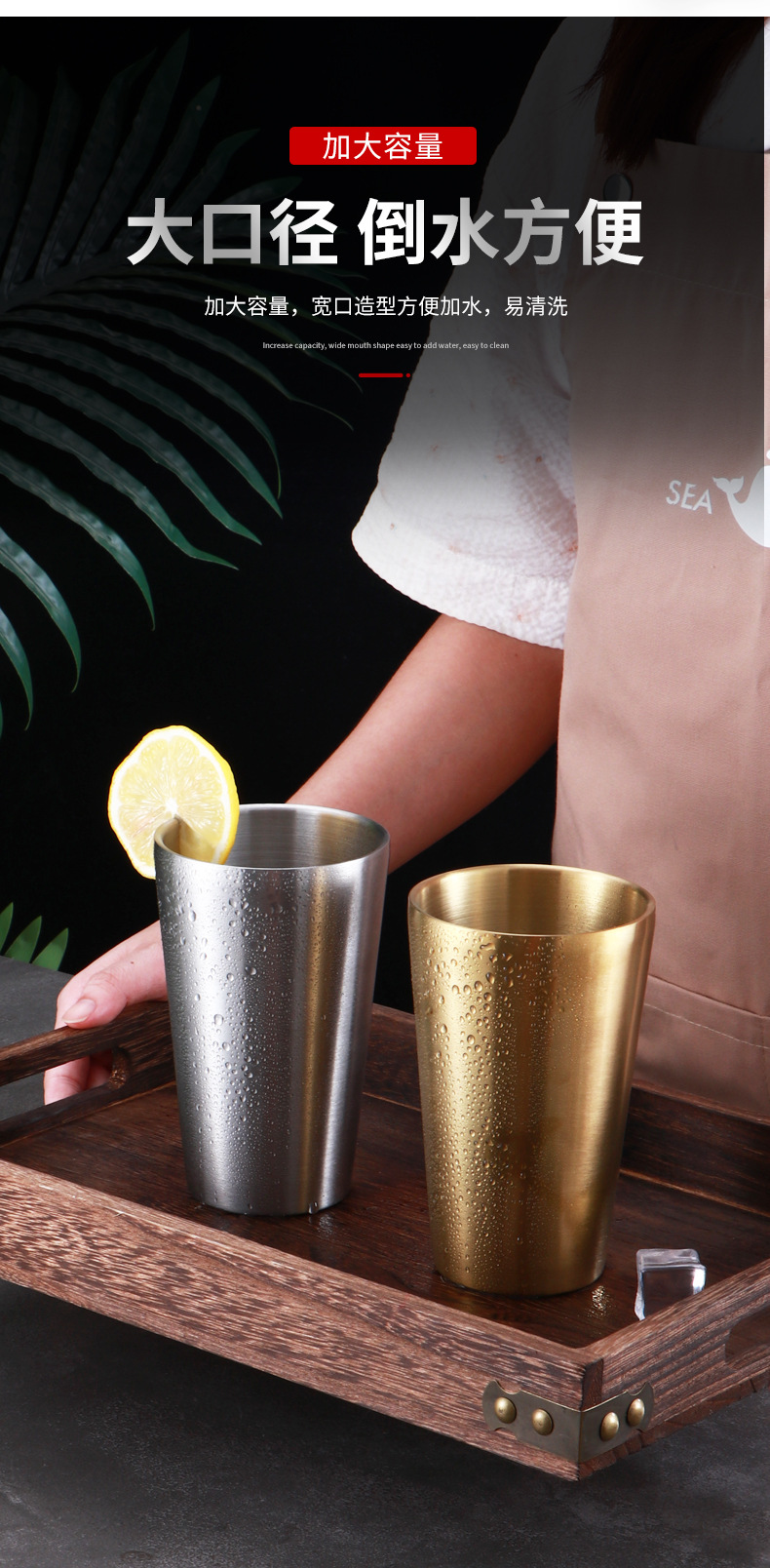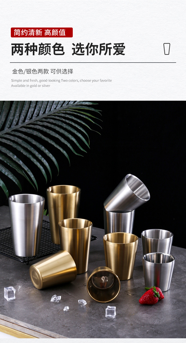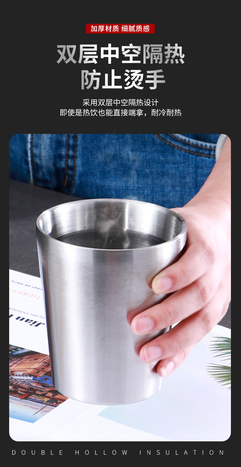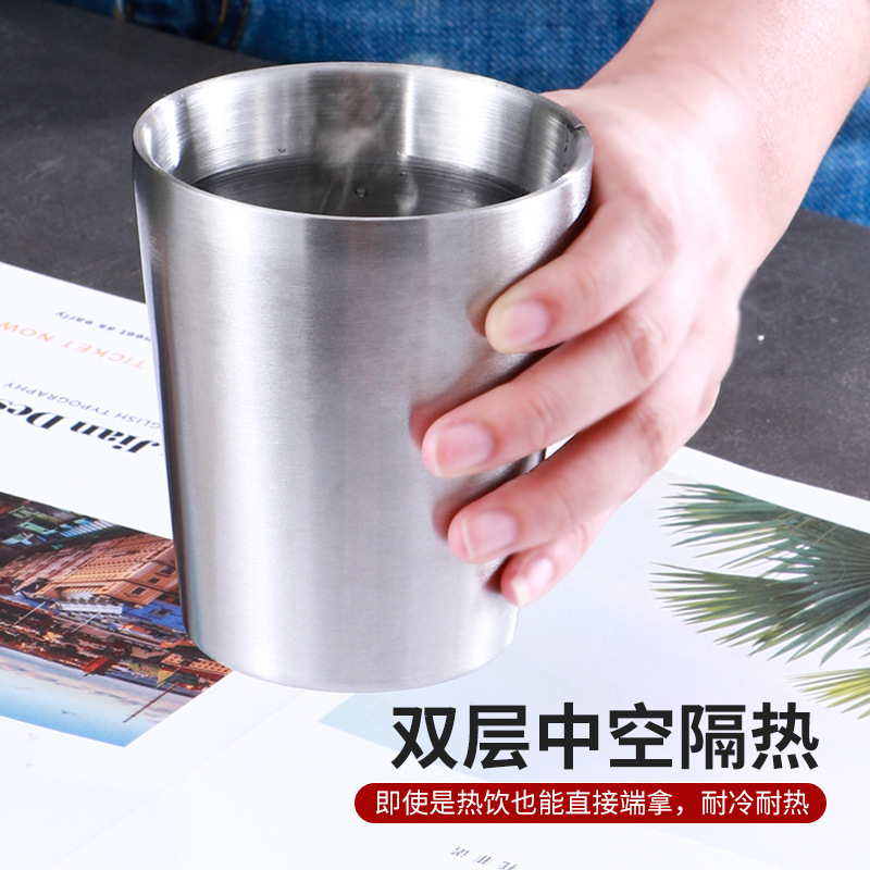 加厚304 不锈钢杯子直形口杯餐厅水杯啤酒杯双层隔热儿童喝水杯子