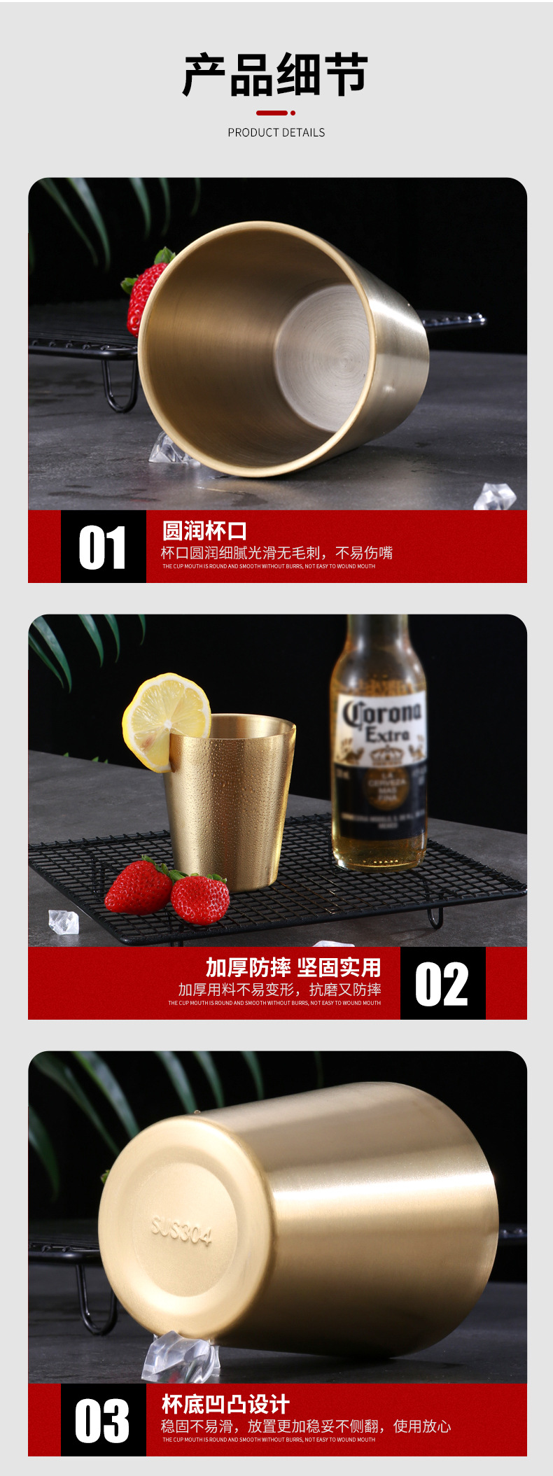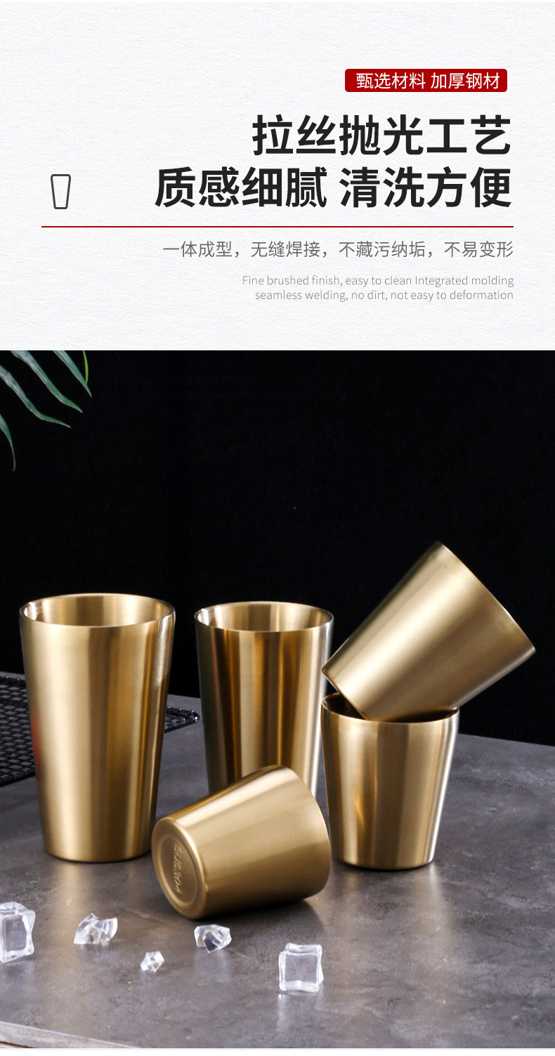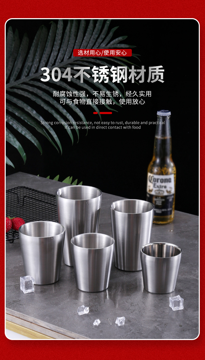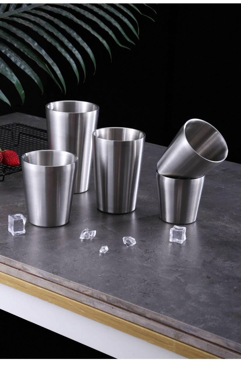 加厚304 不锈钢杯子直形口杯餐厅水杯啤酒杯双层隔热儿童喝水杯子