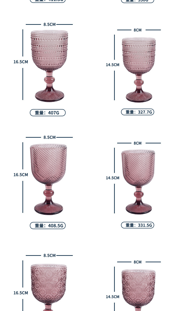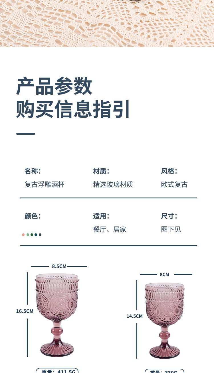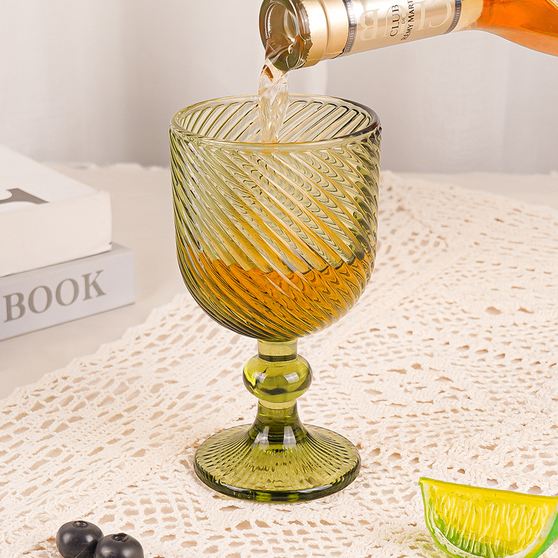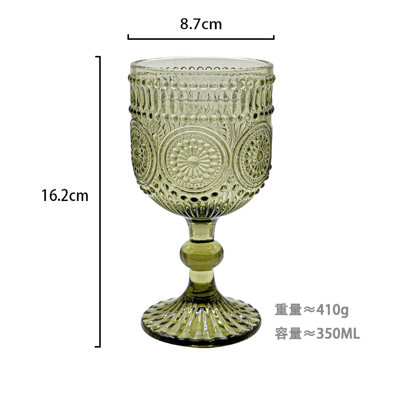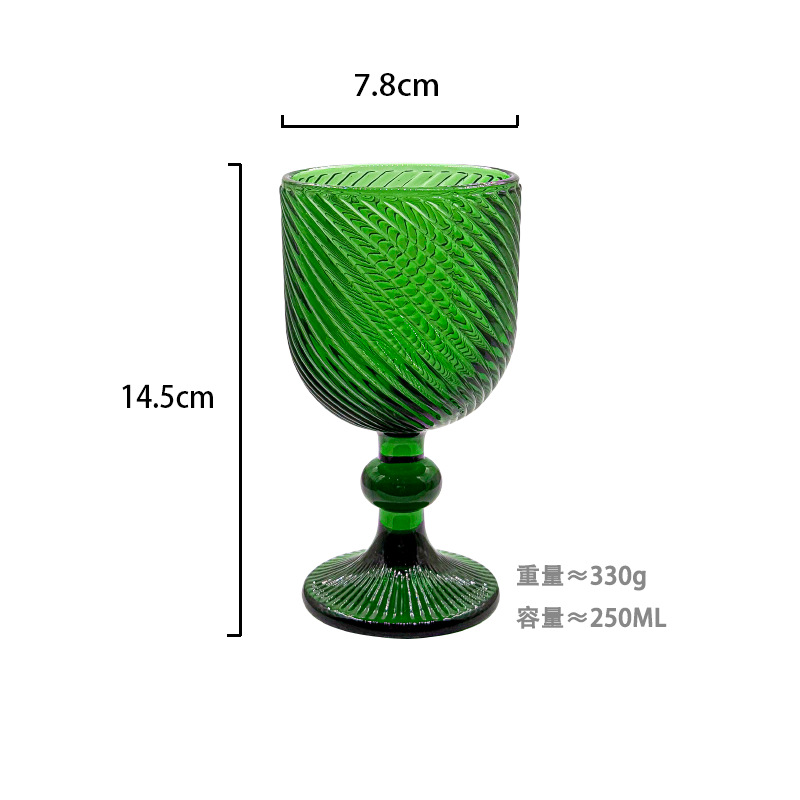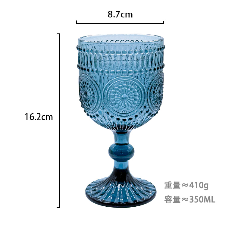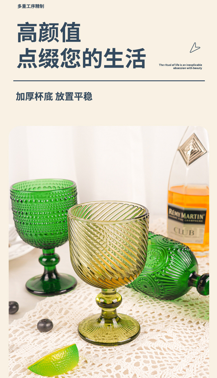 工厂批发欧式彩色红酒杯浮雕玻璃杯果汁杯婚礼宴会高脚杯葡萄酒杯