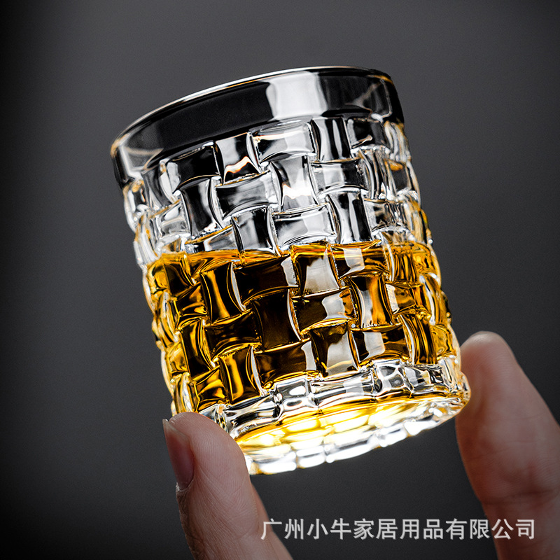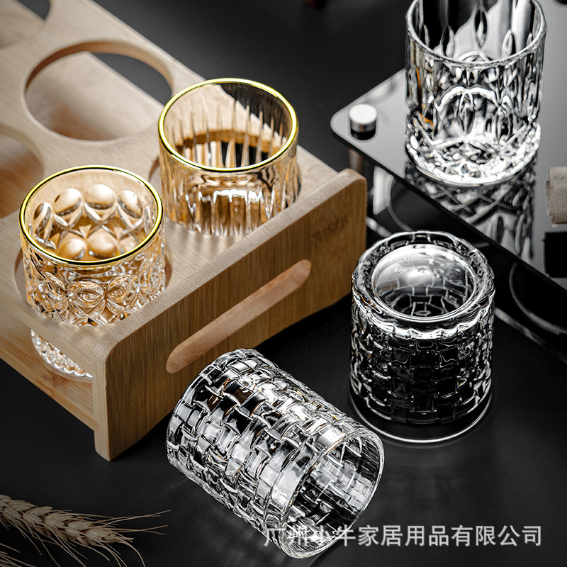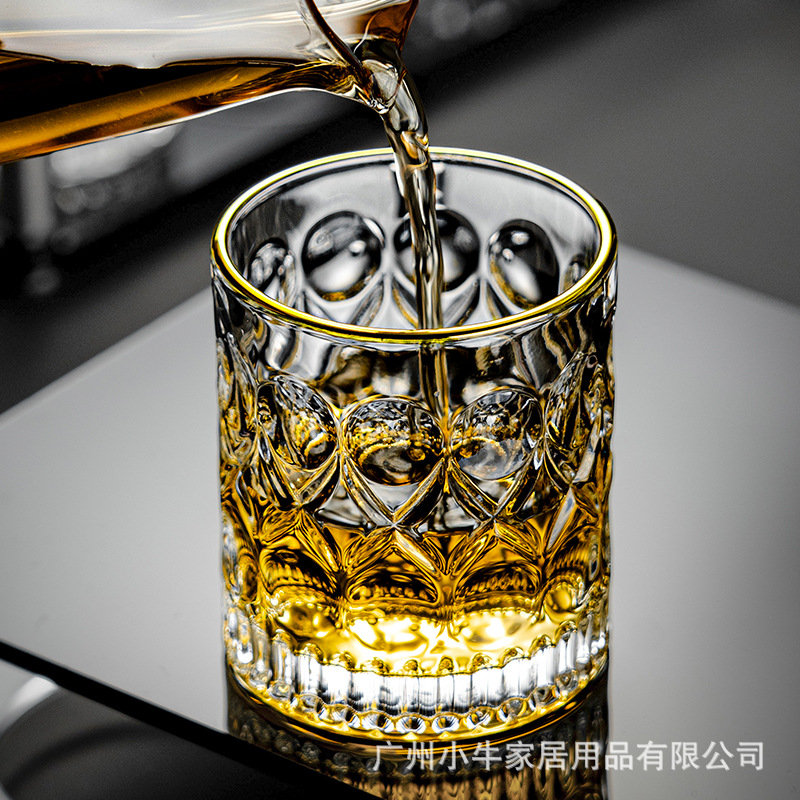 创意浮雕啤酒烈酒杯家用二两杯轻奢高端刻花威士忌酒杯跨境啤酒杯