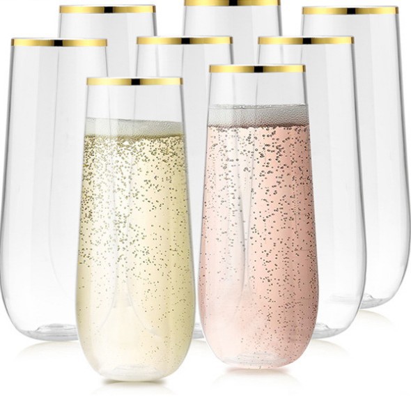 跨境9ozPET金边塑料酒杯香槟杯果汁杯冰淇淋杯葡萄酒杯耐摔防碎