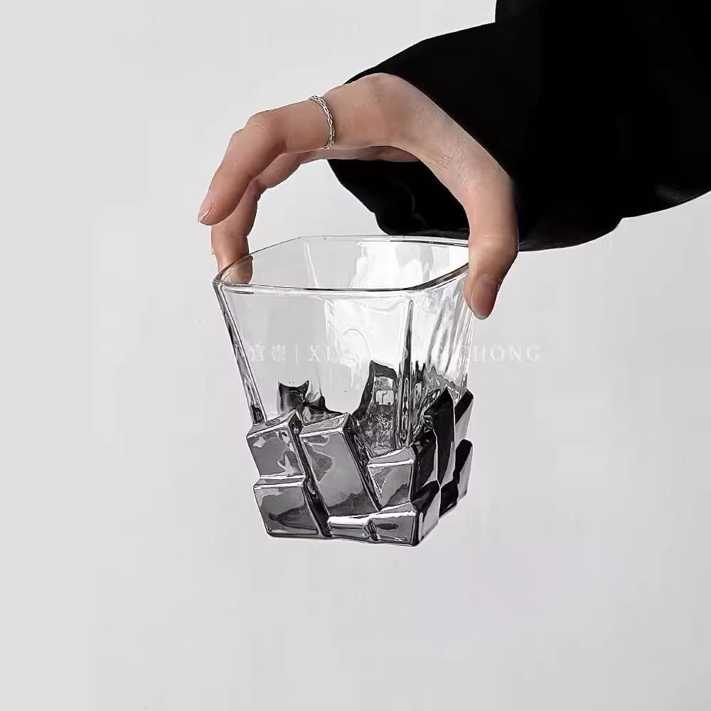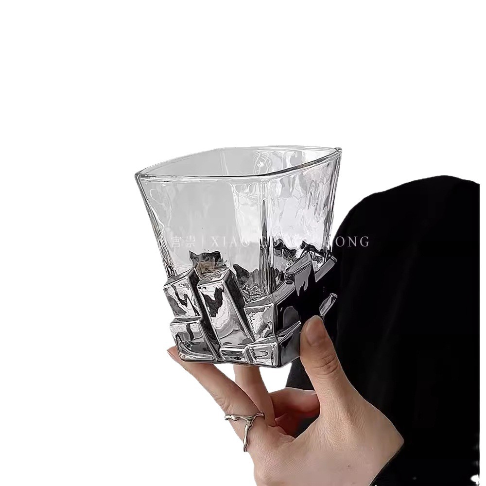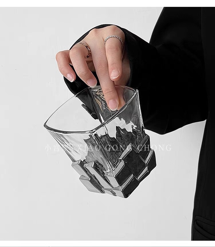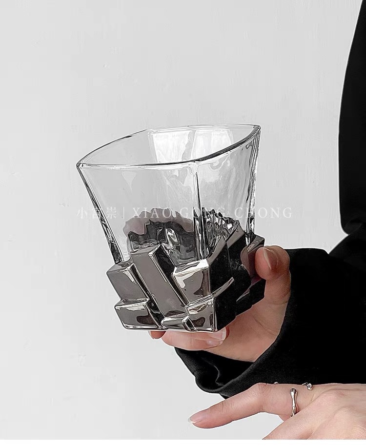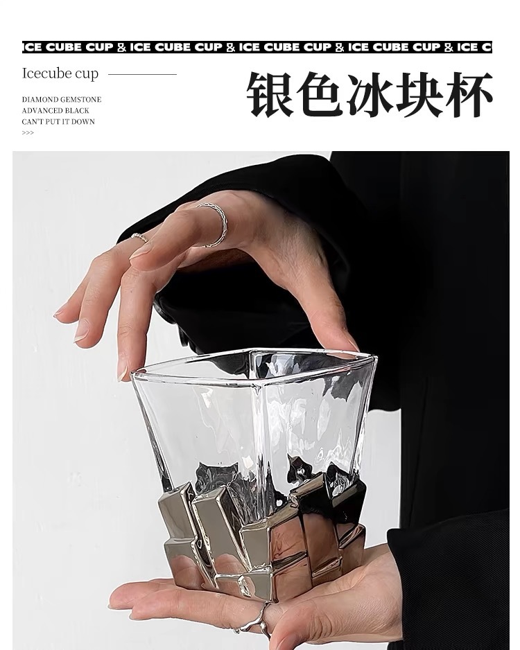 太空银冰块杯艺术感限定酒杯创意轻奢玻璃杯高级感水杯子威士忌杯