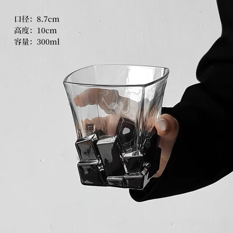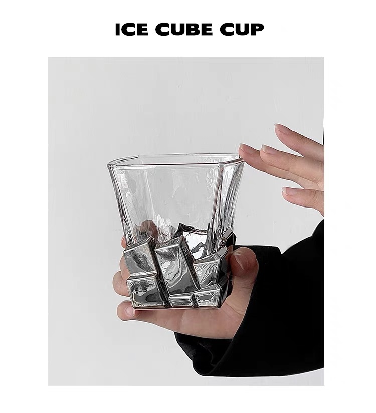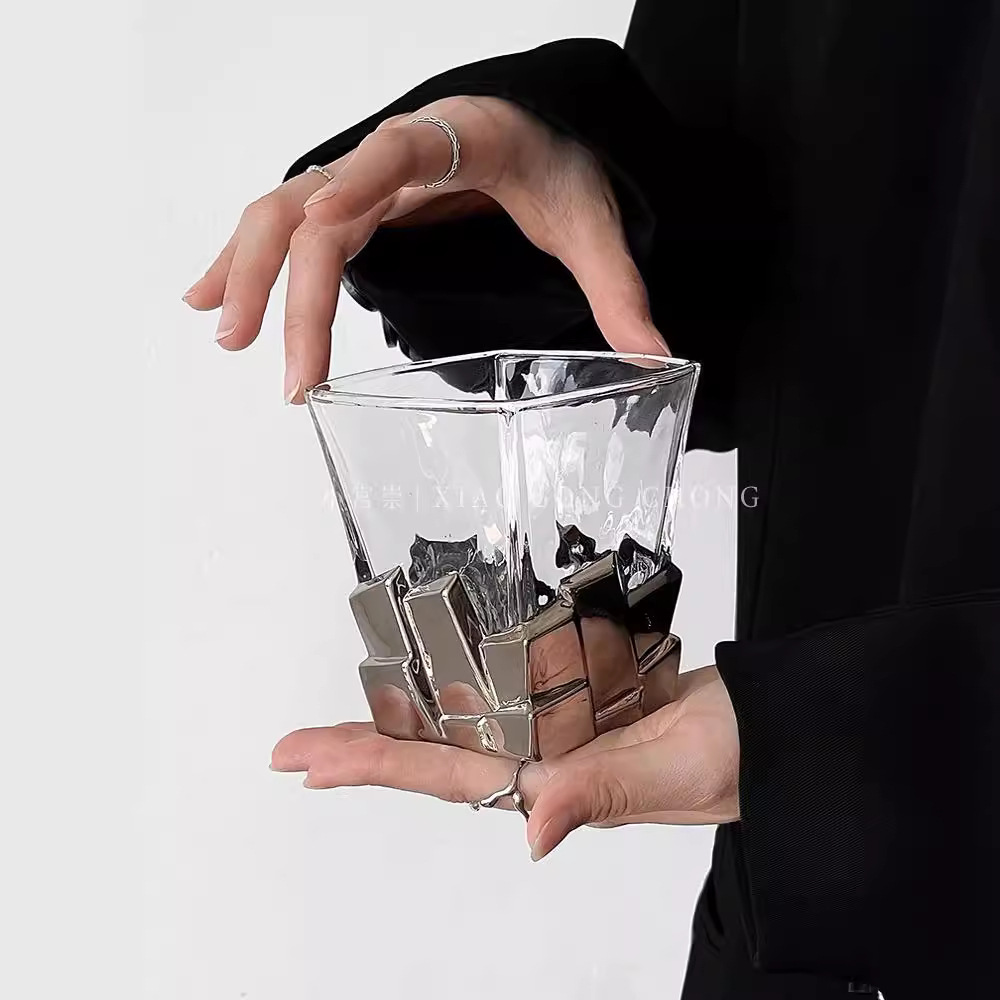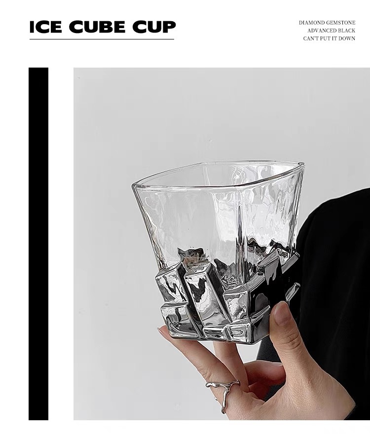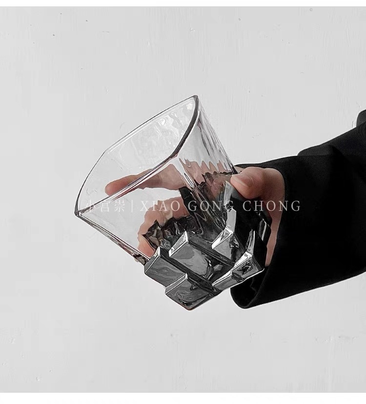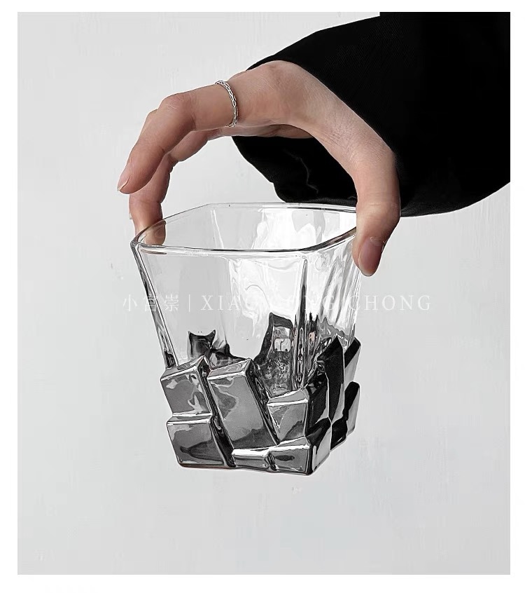 太空银冰块杯艺术感限定酒杯创意轻奢玻璃杯高级感水杯子威士忌杯