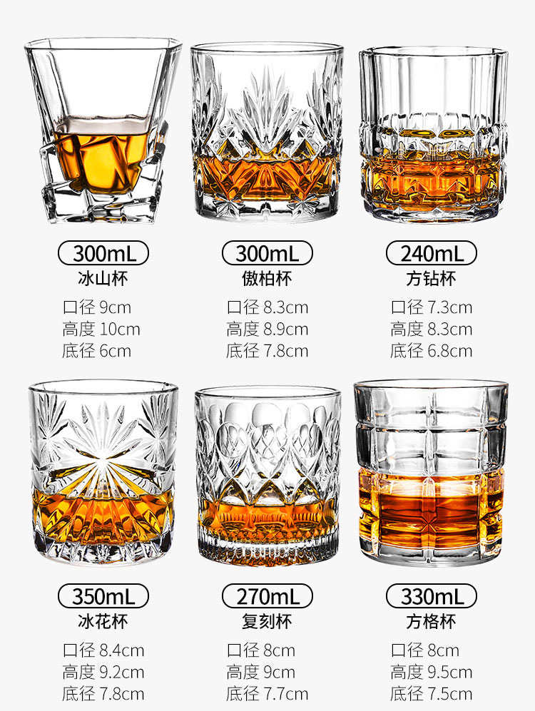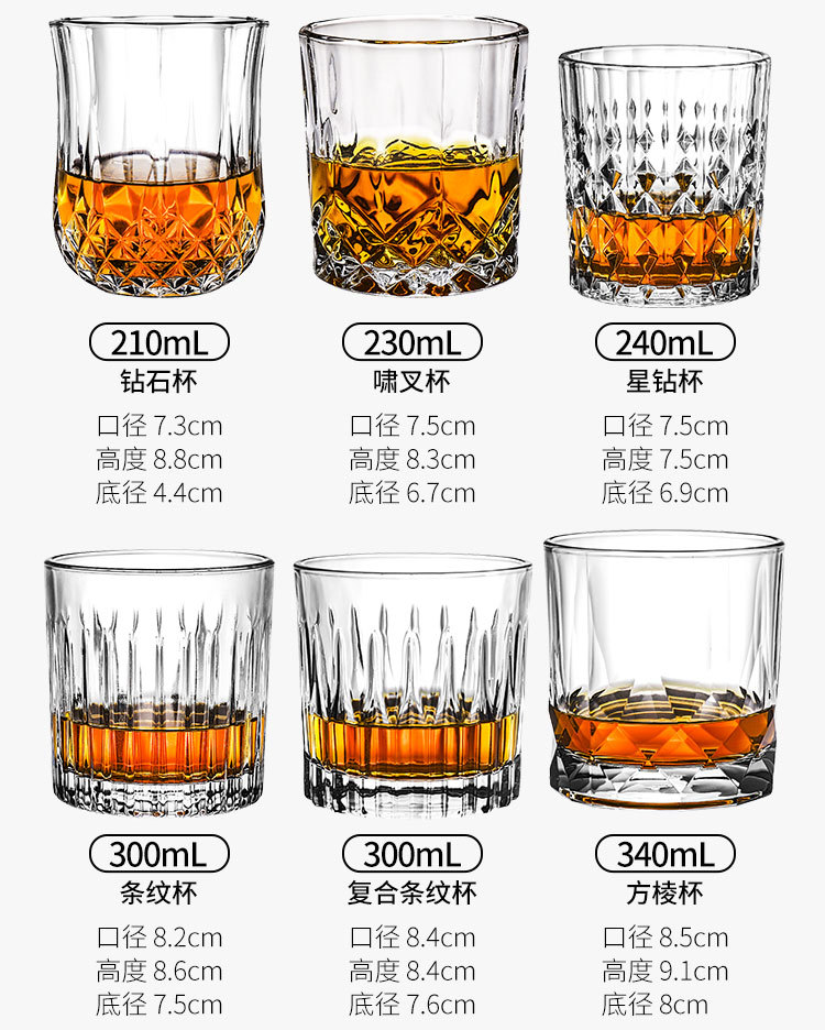 威士忌杯玻璃酒杯洋酒杯古典杯喝酒杯子威士忌酒杯酒吧酒具啤酒杯