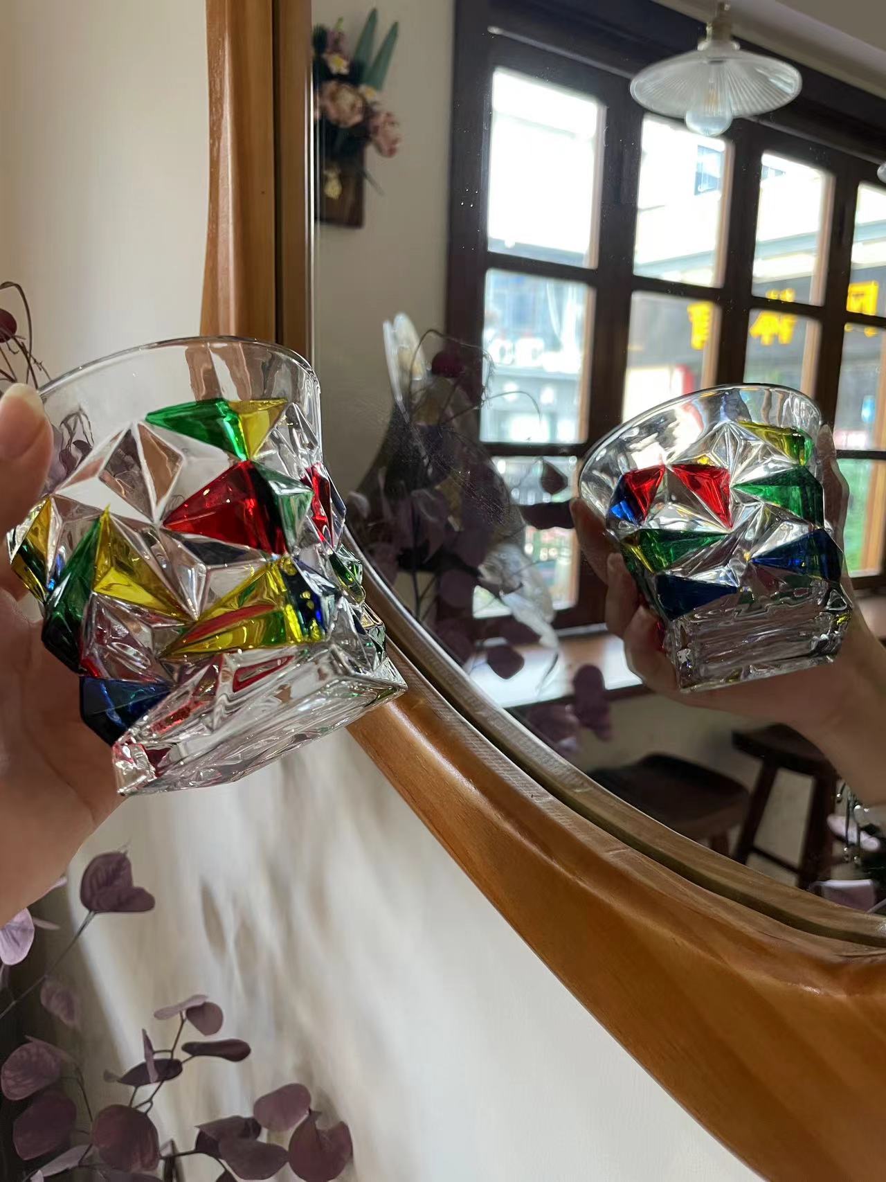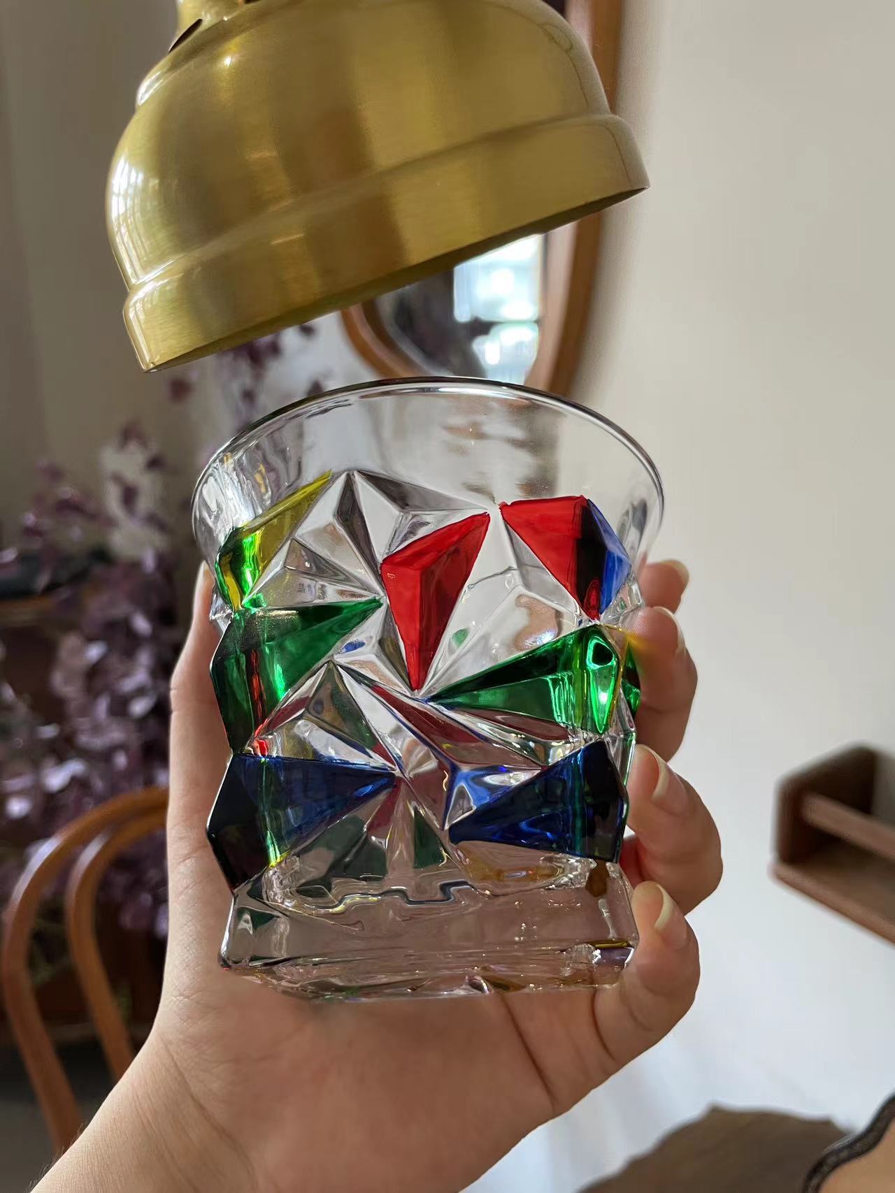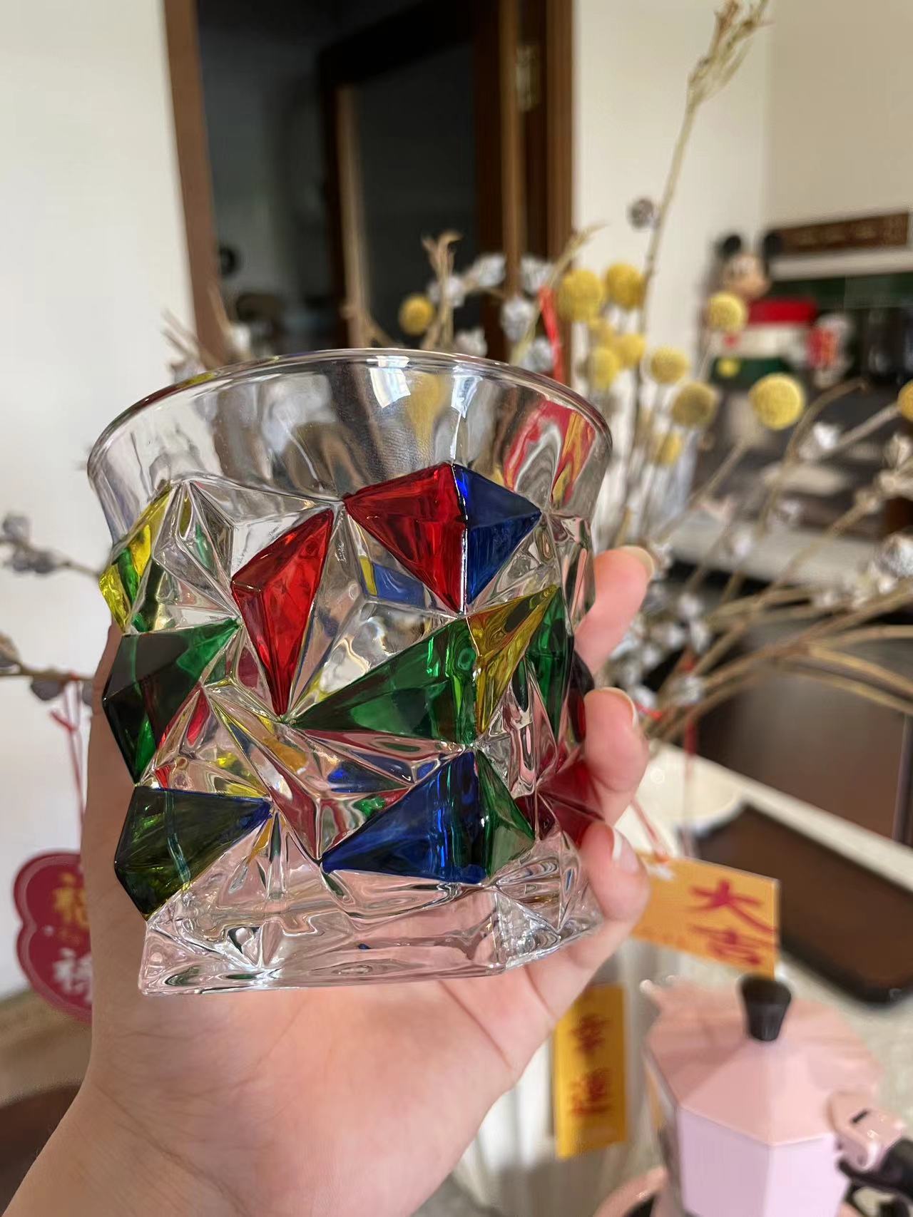手绘威士忌酒杯家用水晶杯玻璃创意洋酒杯高颜值奢华酒具酒杯水杯