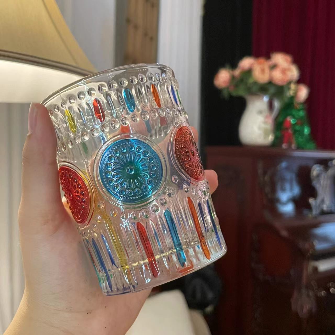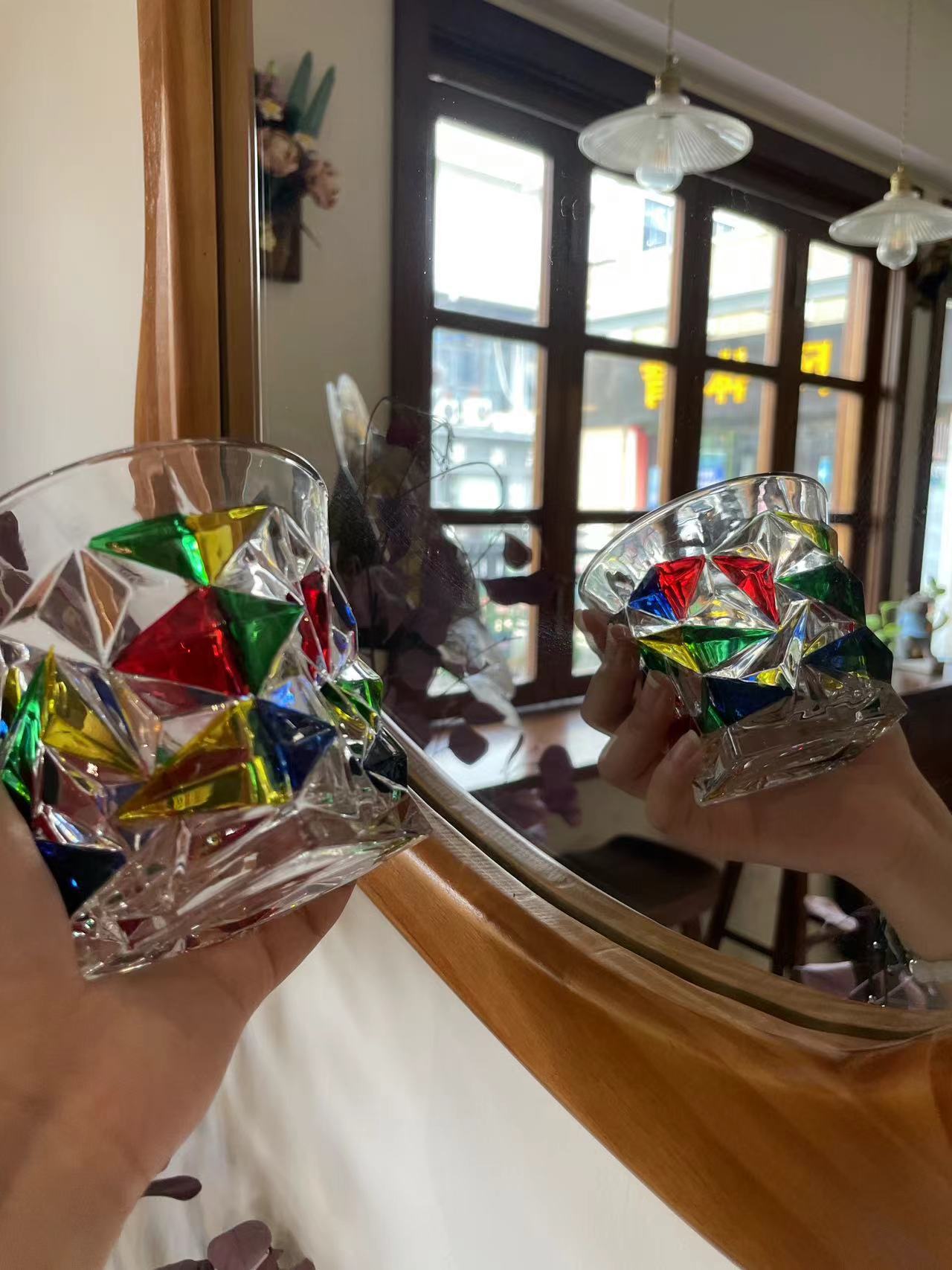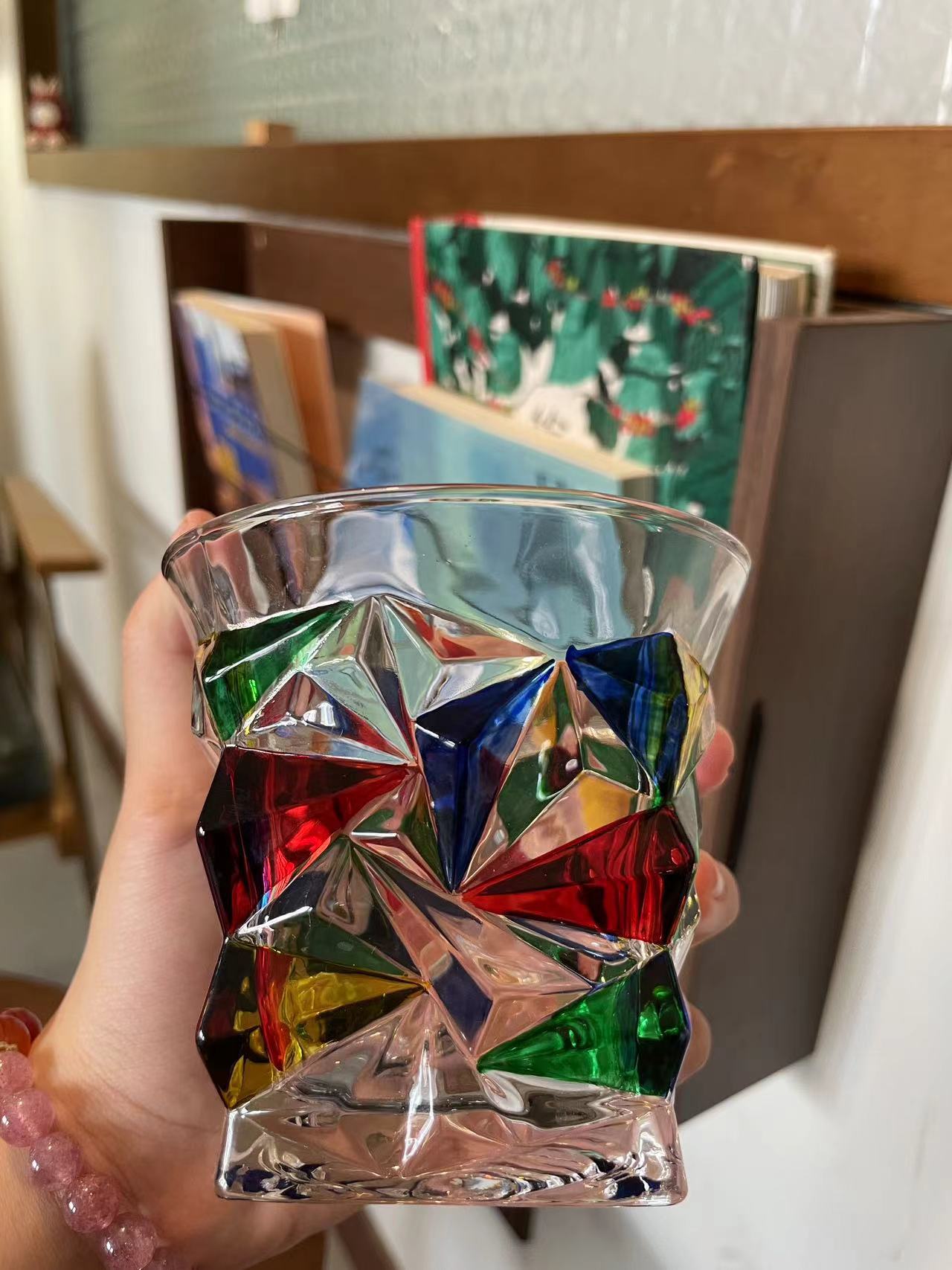 手绘威士忌酒杯家用水晶杯玻璃创意洋酒杯高颜值奢华酒具酒杯水杯