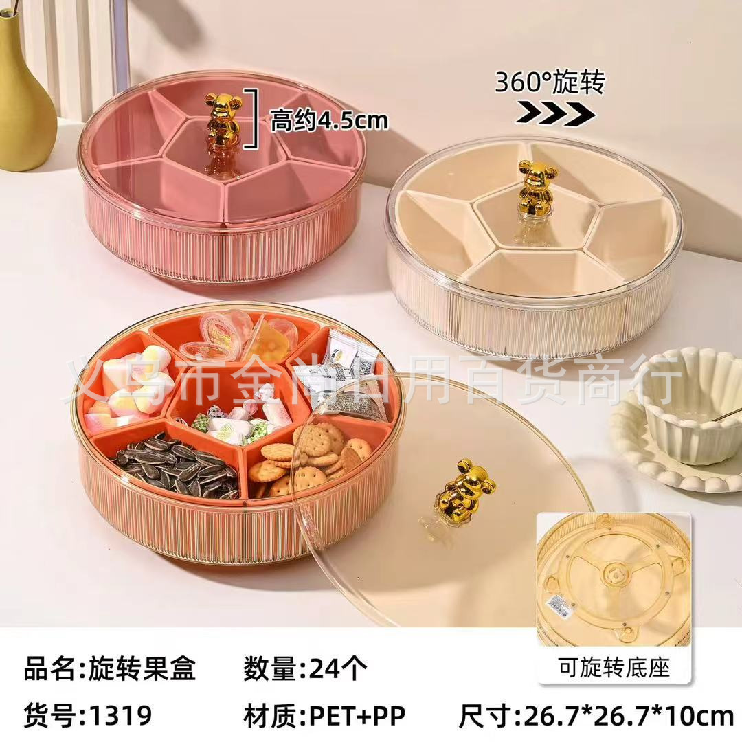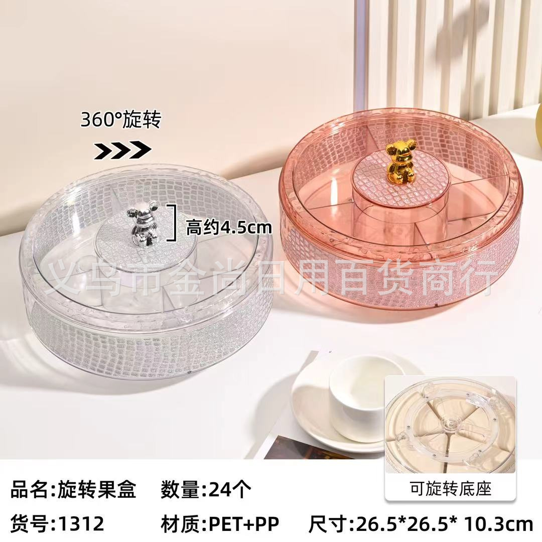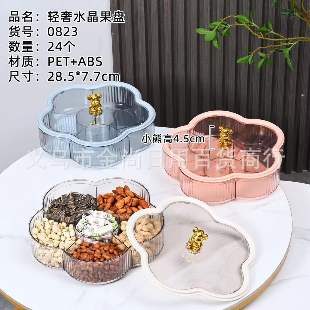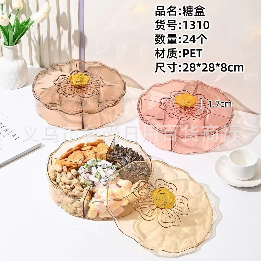 塑料糖果盒客厅茶几干果盘瓜子盘收纳盒分格式带盖糖果盘轻奢风