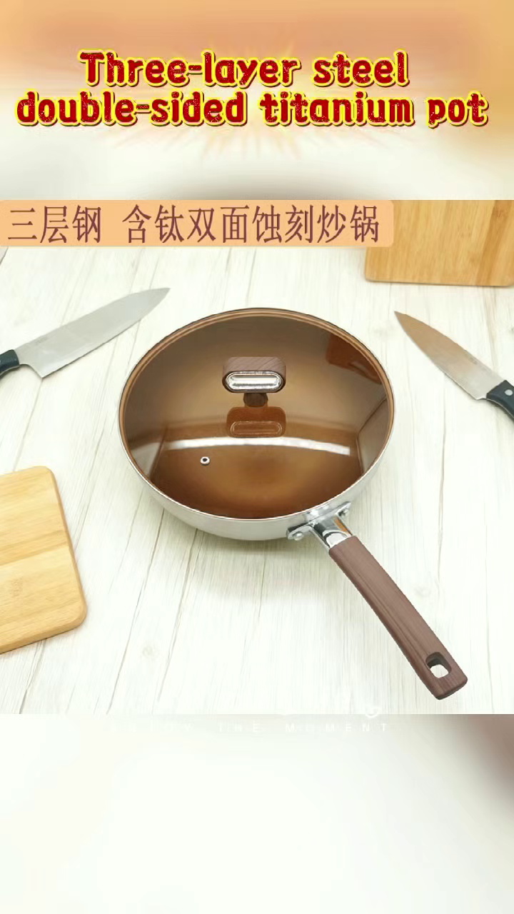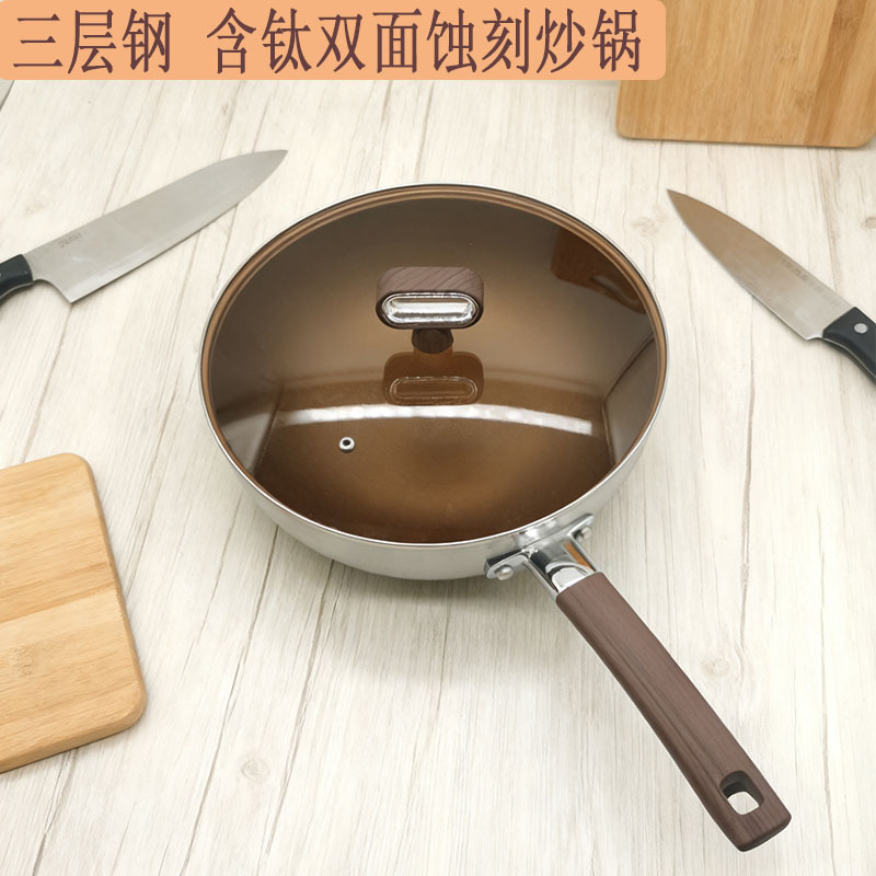 批发无涂层不粘锅钛锅炒锅平底不锈钢钛盾家用电磁炉气灶专用