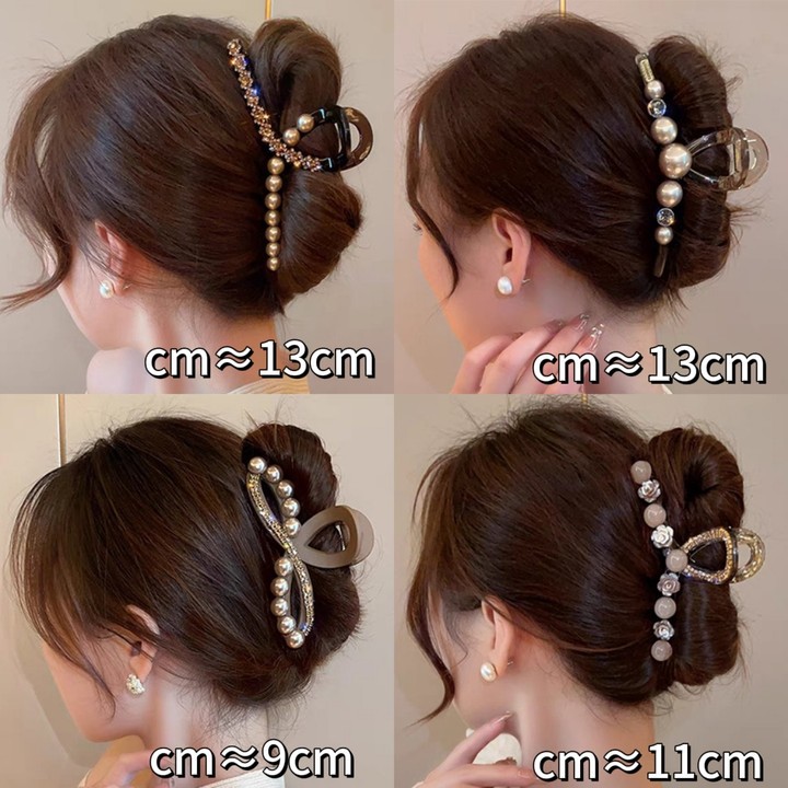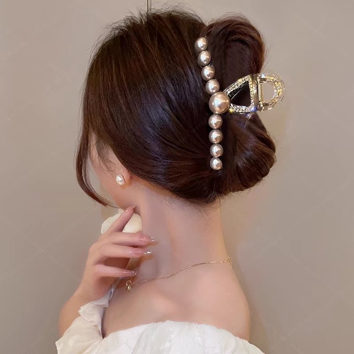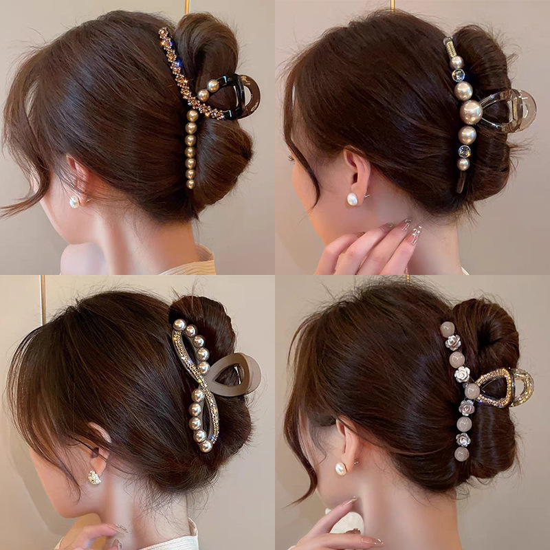 2024新款高级感韩版珍珠镶钻抓夹轻奢闪钻鲨鱼夹后脑勺盘发夹发卡
