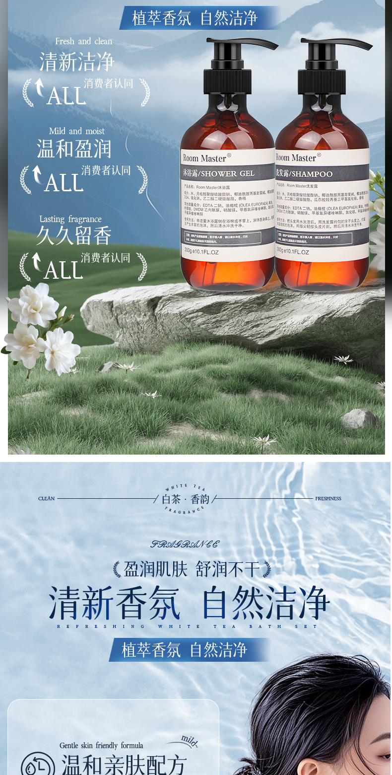 白茶香洗发水沐浴露二合一星级酒店宾馆民宿专用500ml大瓶装批发