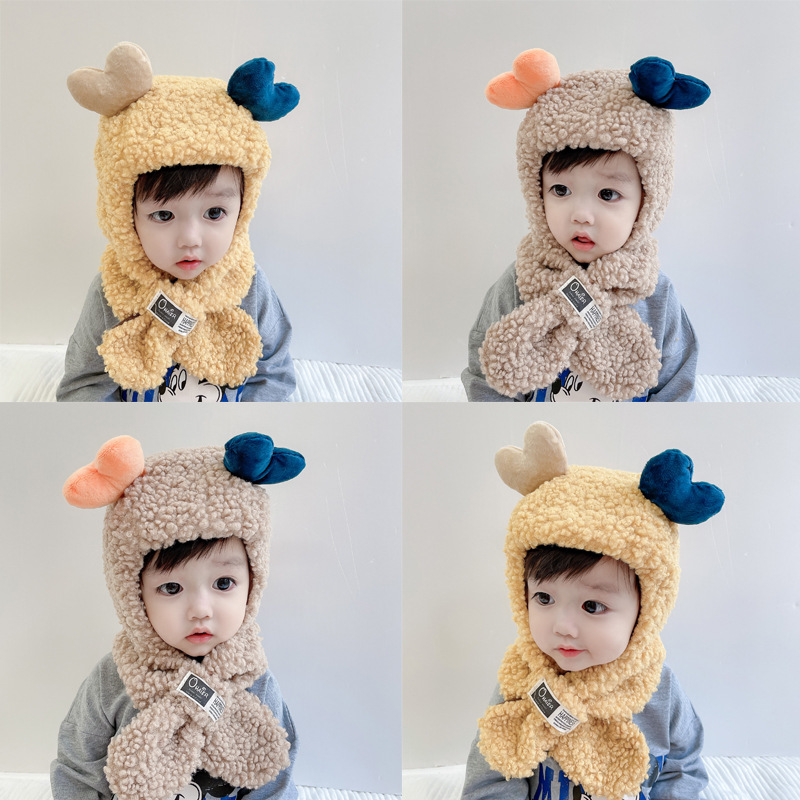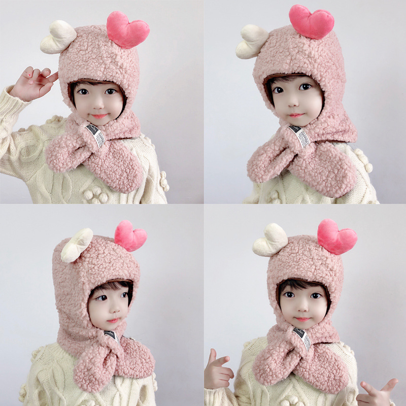 秋南 儿童帽子围巾一体冬季婴幼儿护脸毛绒可爱超萌宝宝护耳帽