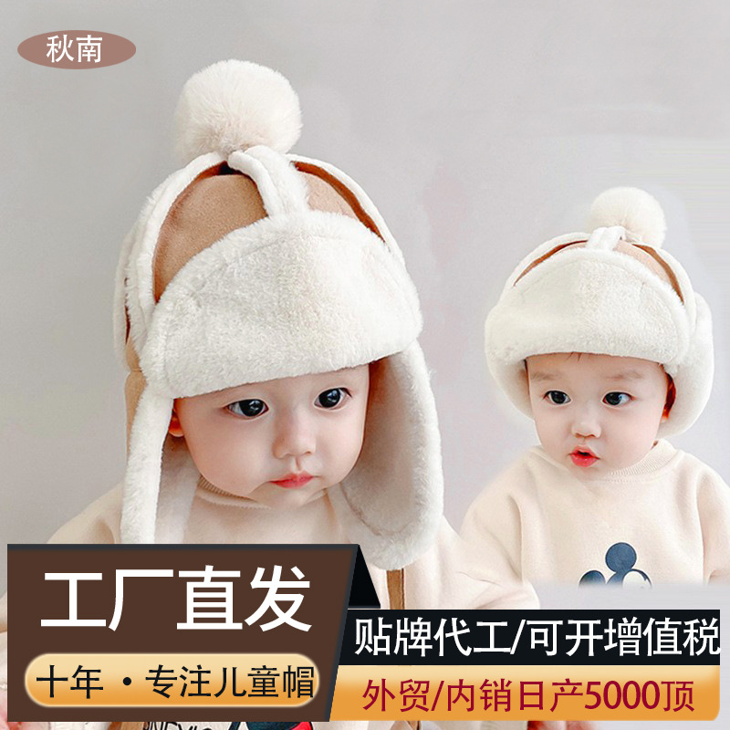 秋南 儿童帽子秋冬2025新款时尚ins加绒保暖毛绒护耳帽宝宝雷锋帽
