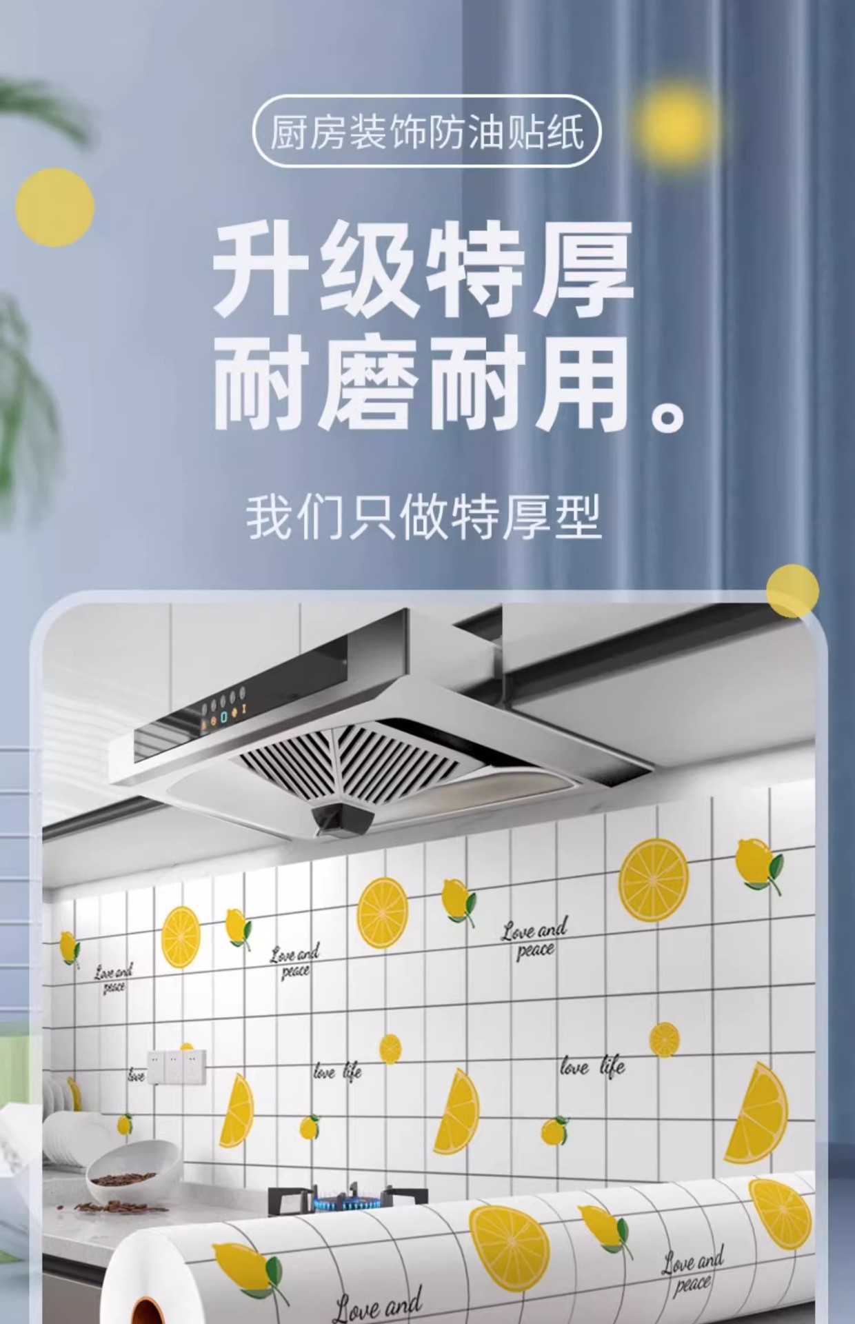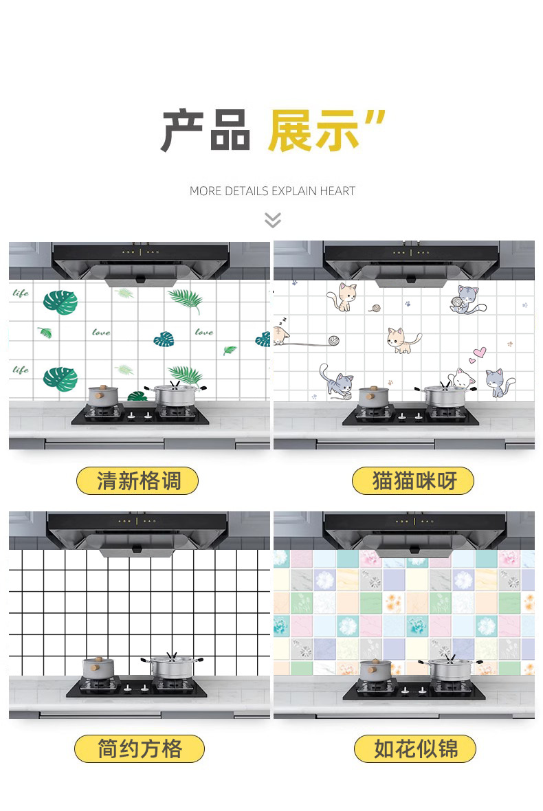 厨房防油烟贴纸防水防油灶台贴纸阻燃墙纸自粘墙贴高颜值厨房贴纸