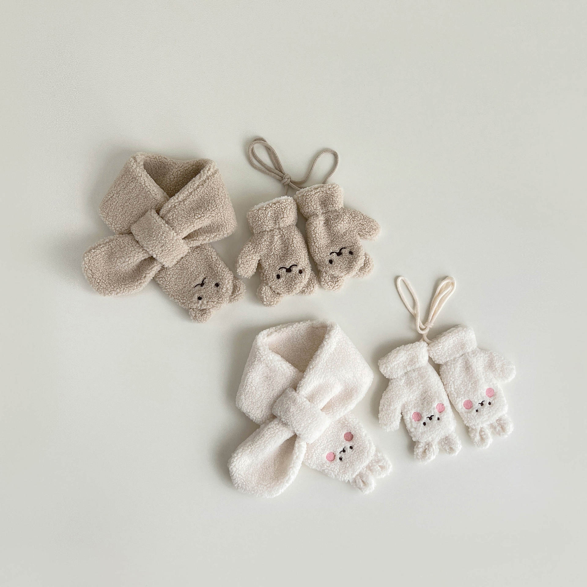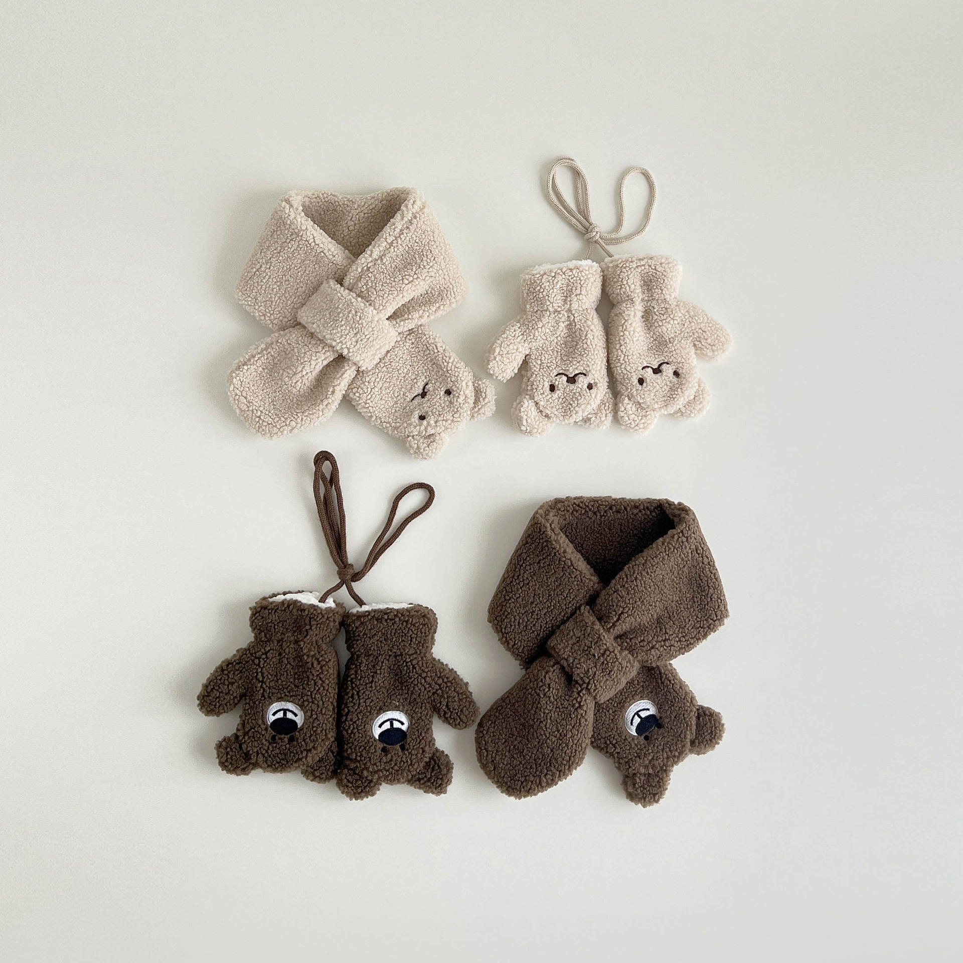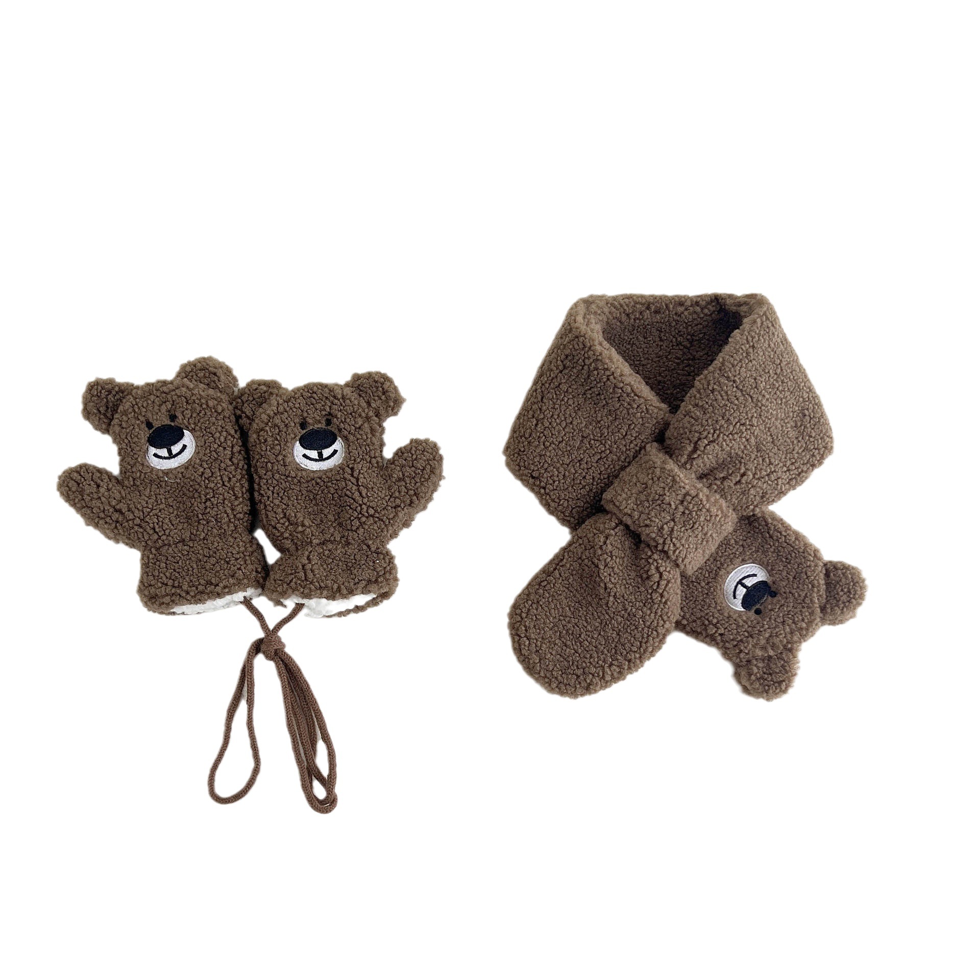 秋南韩国儿童围巾手套冬季新款可爱卡通男女宝宝毛绒手套加绒套装