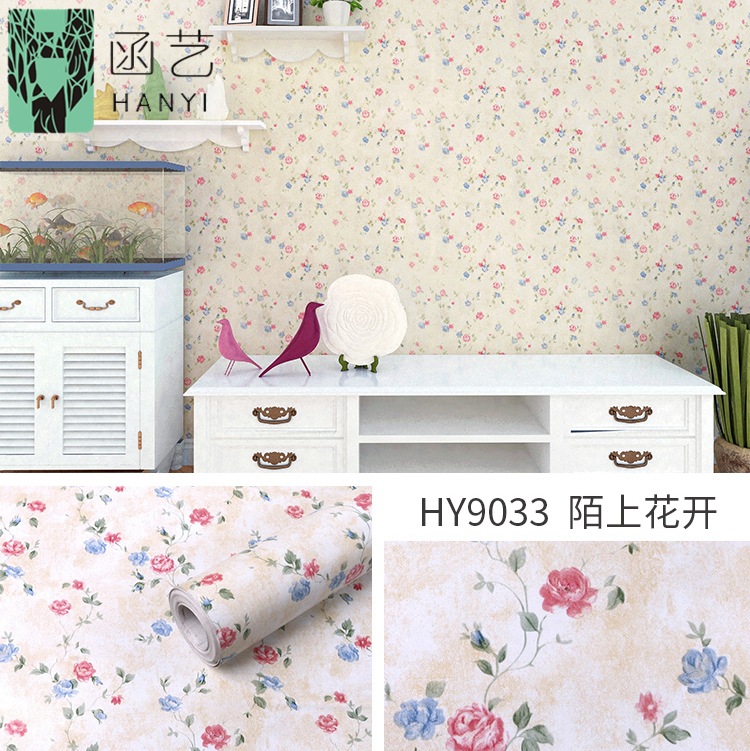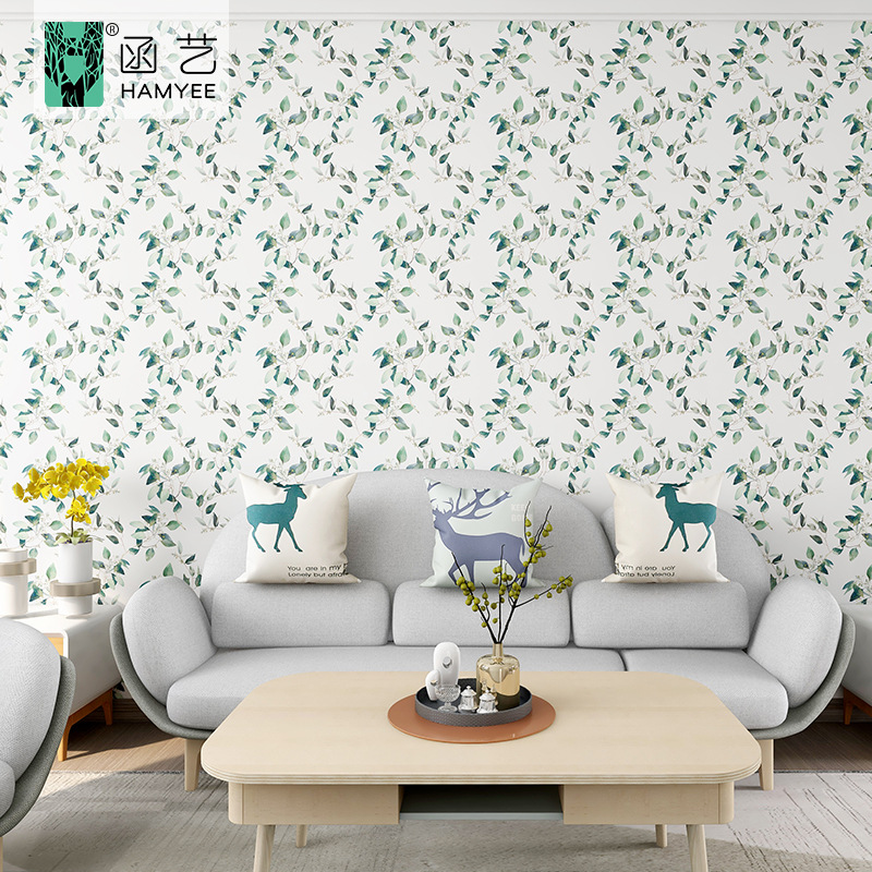 工厂直销自贴出租房绿叶枝条墙纸宿舍花卉壁纸自粘柜子翻新贴纸