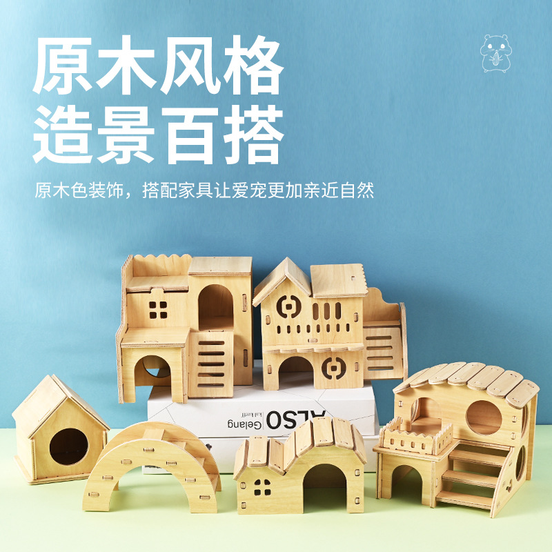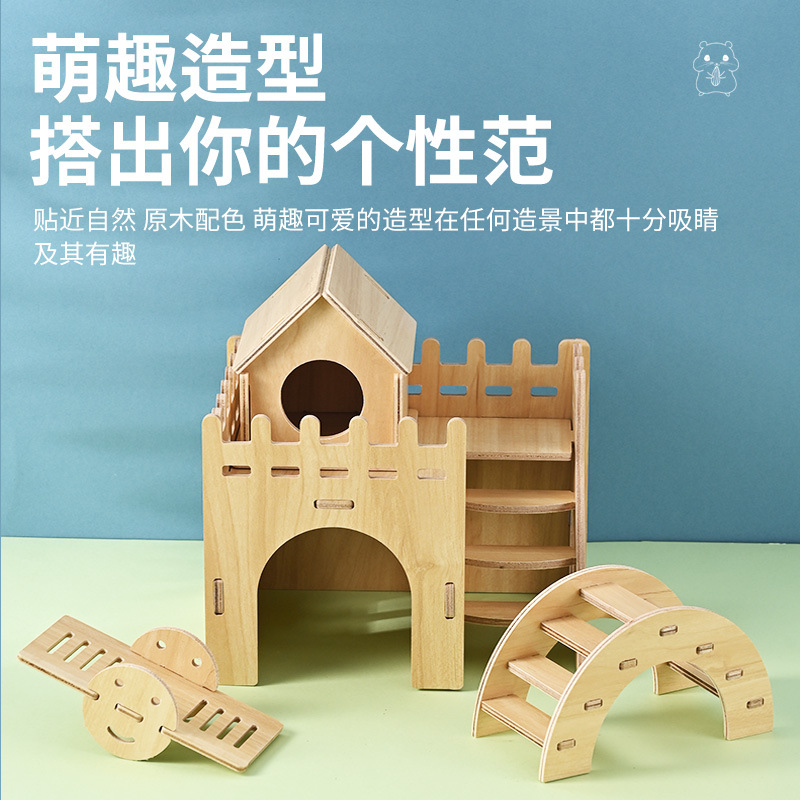 仓鼠窝实木玩具小房子金丝熊躲避屋双层别墅木质秋千造景仓鼠玩具