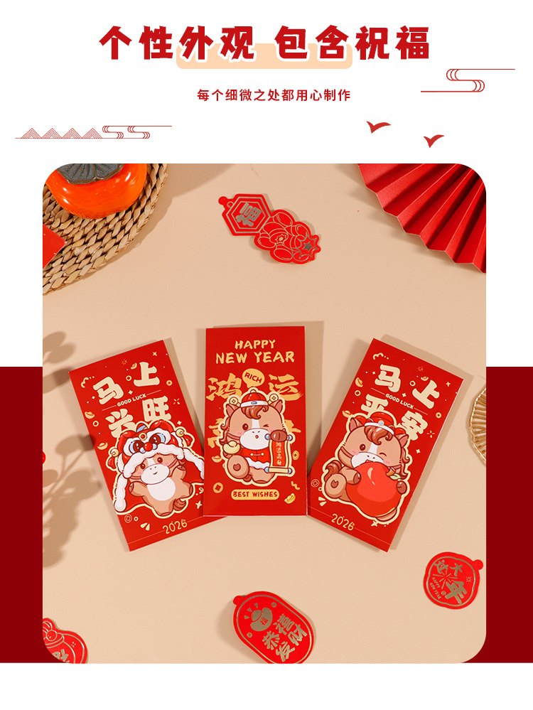 2026新款马年红包创意卡通可爱马生肖利是封春节过新年压岁红包袋