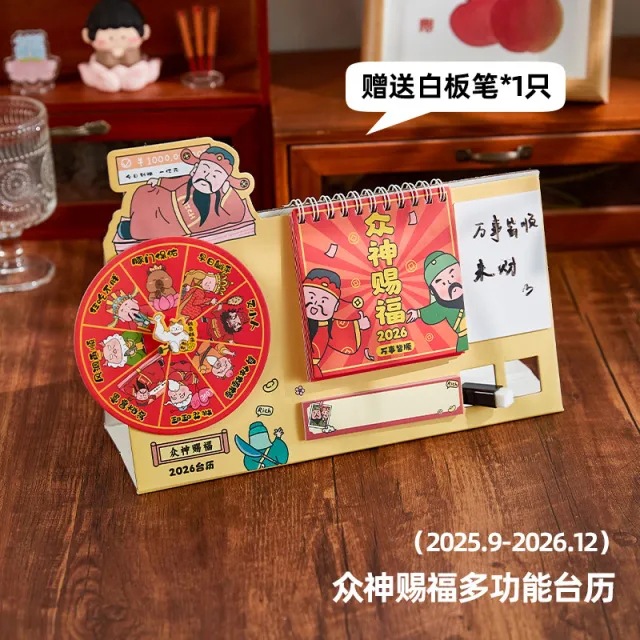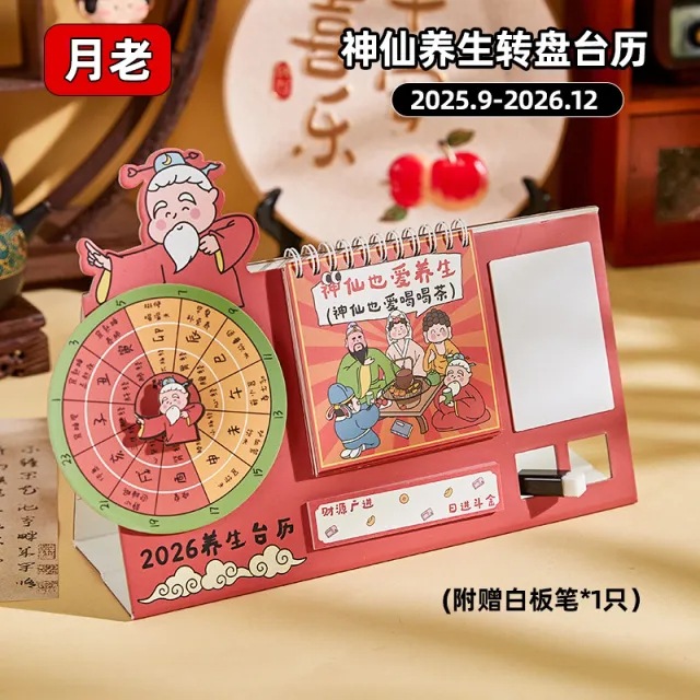 2026新中式养生转盘台历趣味创意小转盘马年多功能办公室桌面摆件