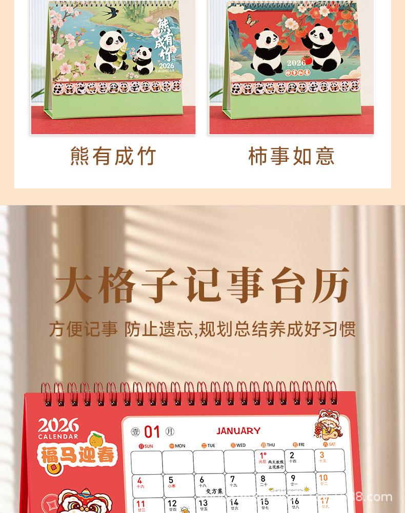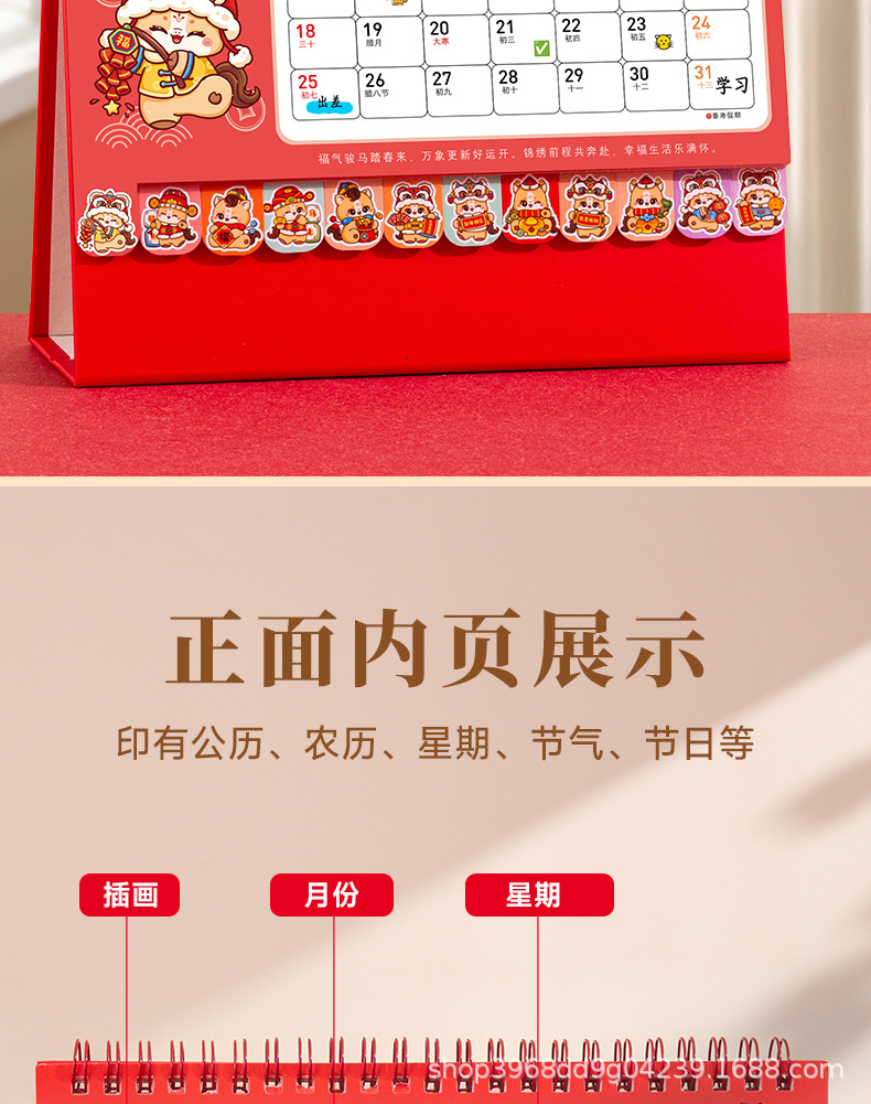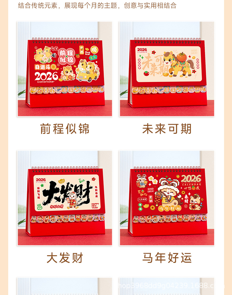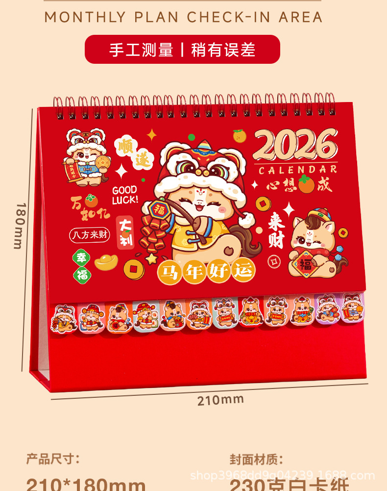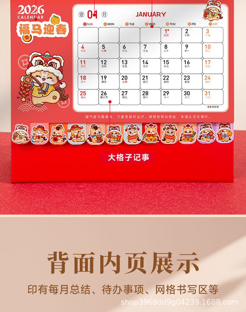 新款台历2026马年异性可爱日历桌面摆件办公记事本公司月历批发