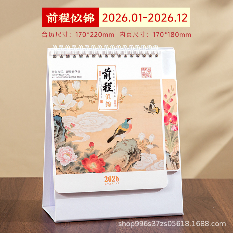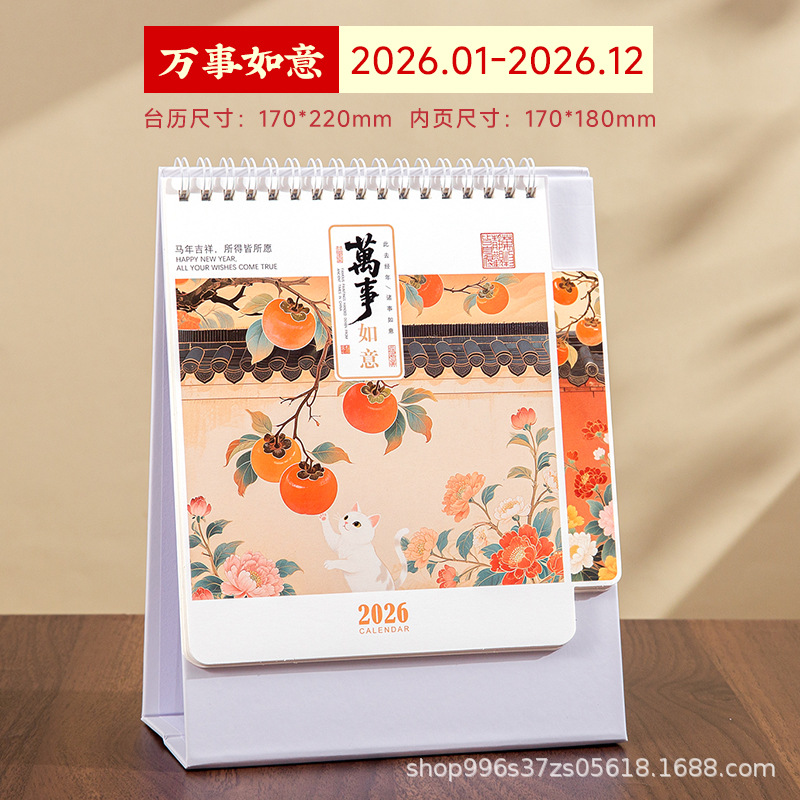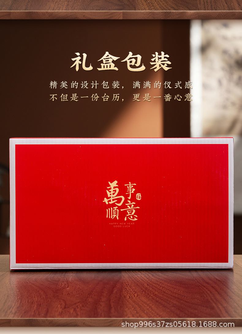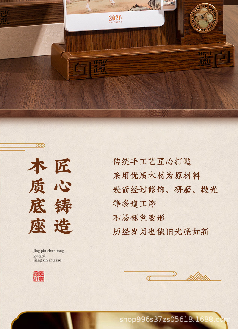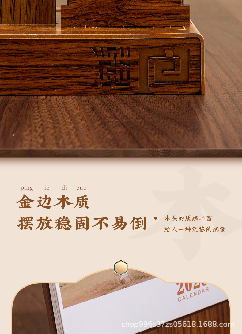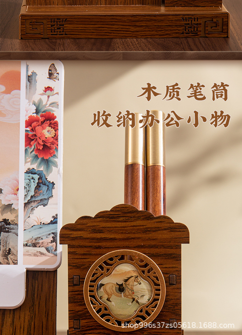 2026年新款台历木质创意马年笔筒中国风打卡办公月历企业印logo