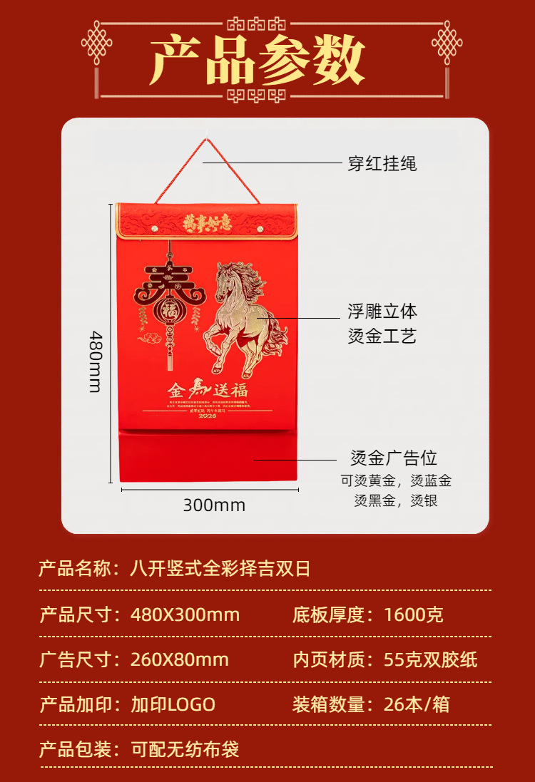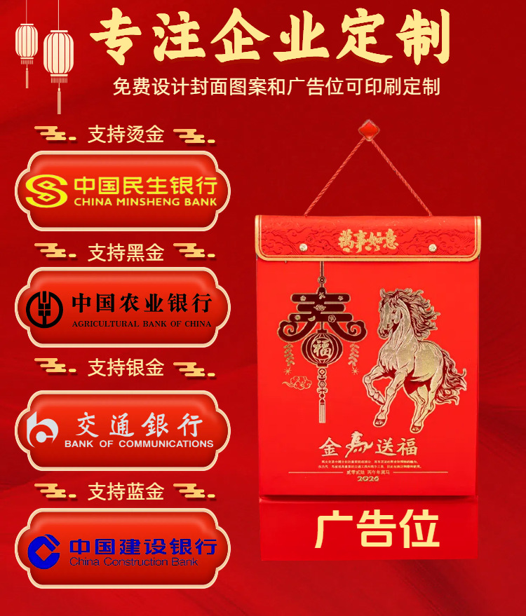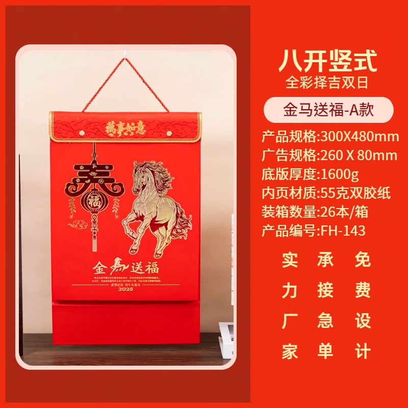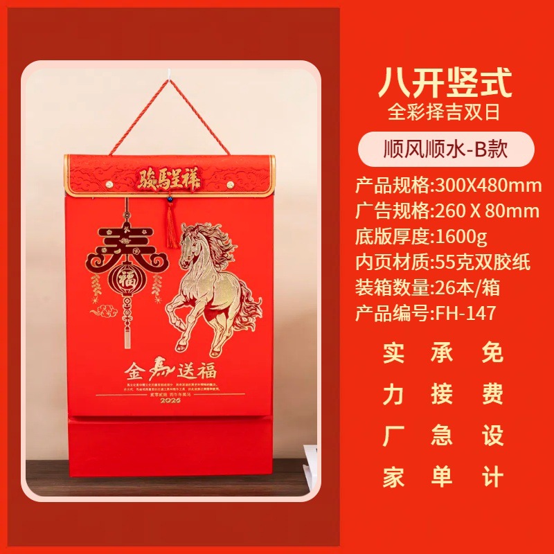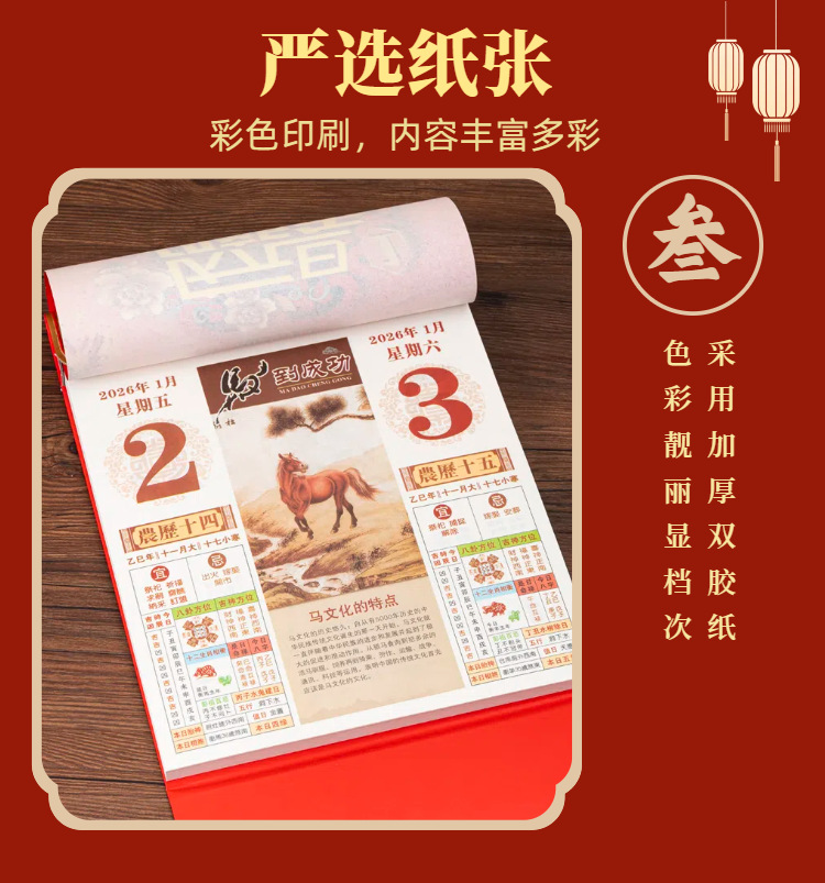 2026马年新款手撕长条双日撕历印刷logo企业广告家用挂墙黄历年历