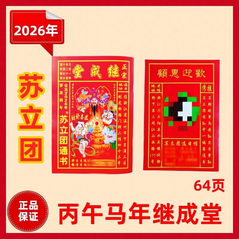 2026年丙午马年温州继成堂老黄历苏立团通书继成堂老皇历通书