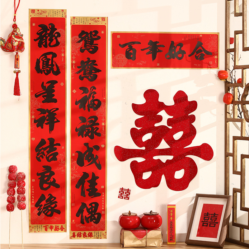 结婚对联黑字2026新款婚房布置卧室男方女方婚联全套出嫁新婚装饰