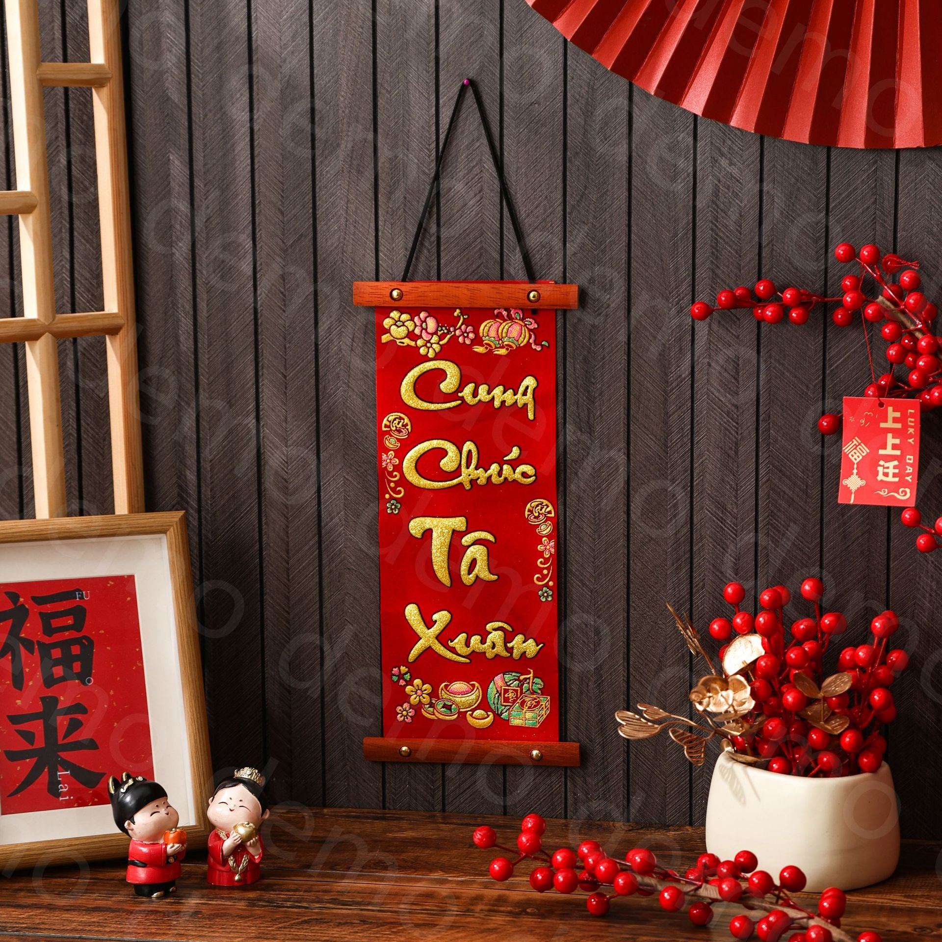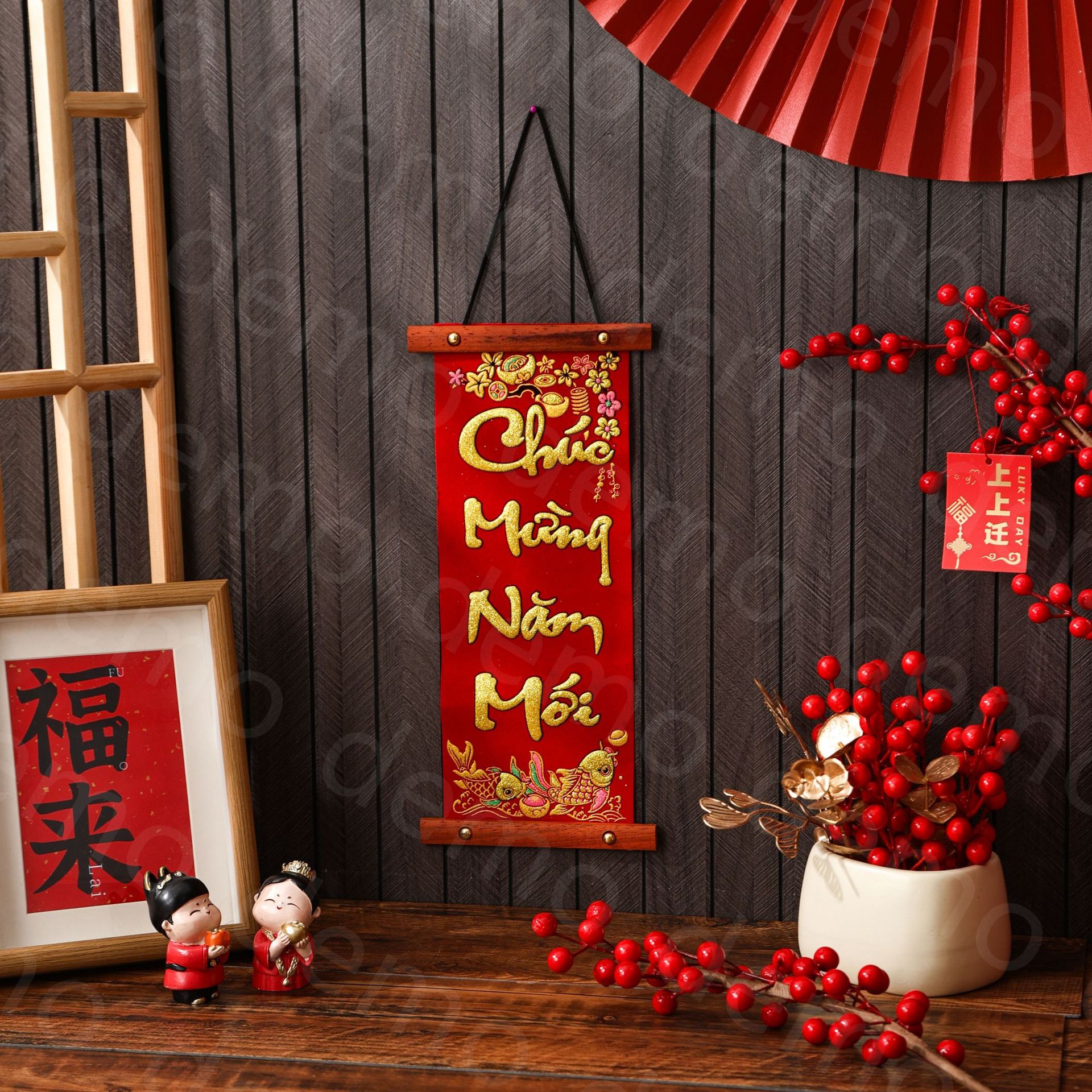 2026越南文字春节挂件植绒对联绒布新年过年挂饰外贸现货爆款批发