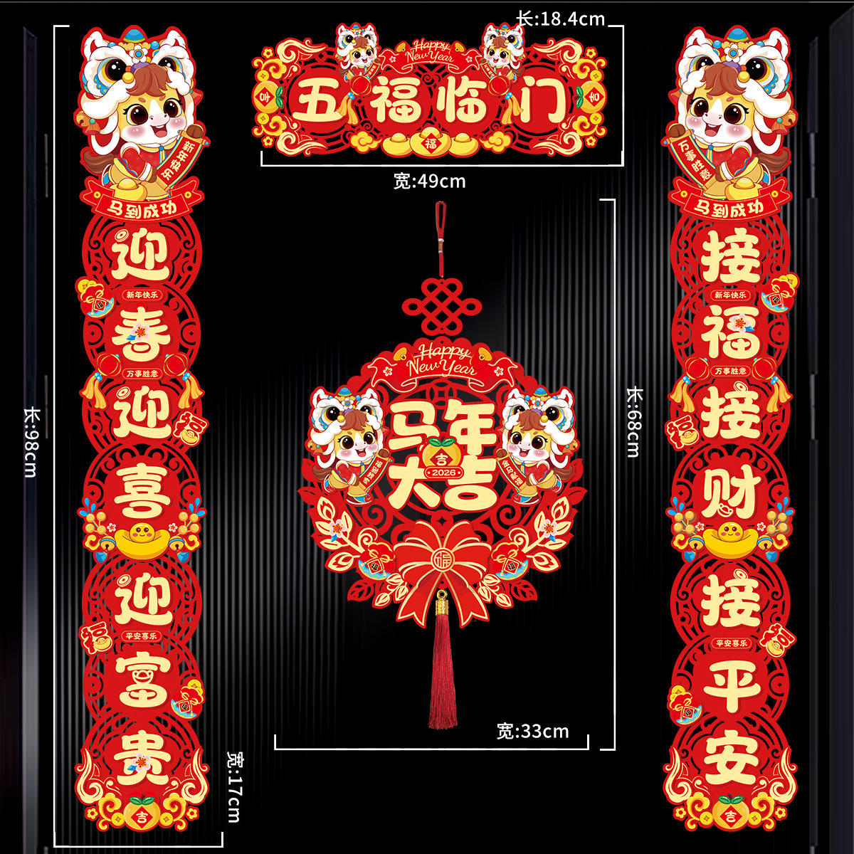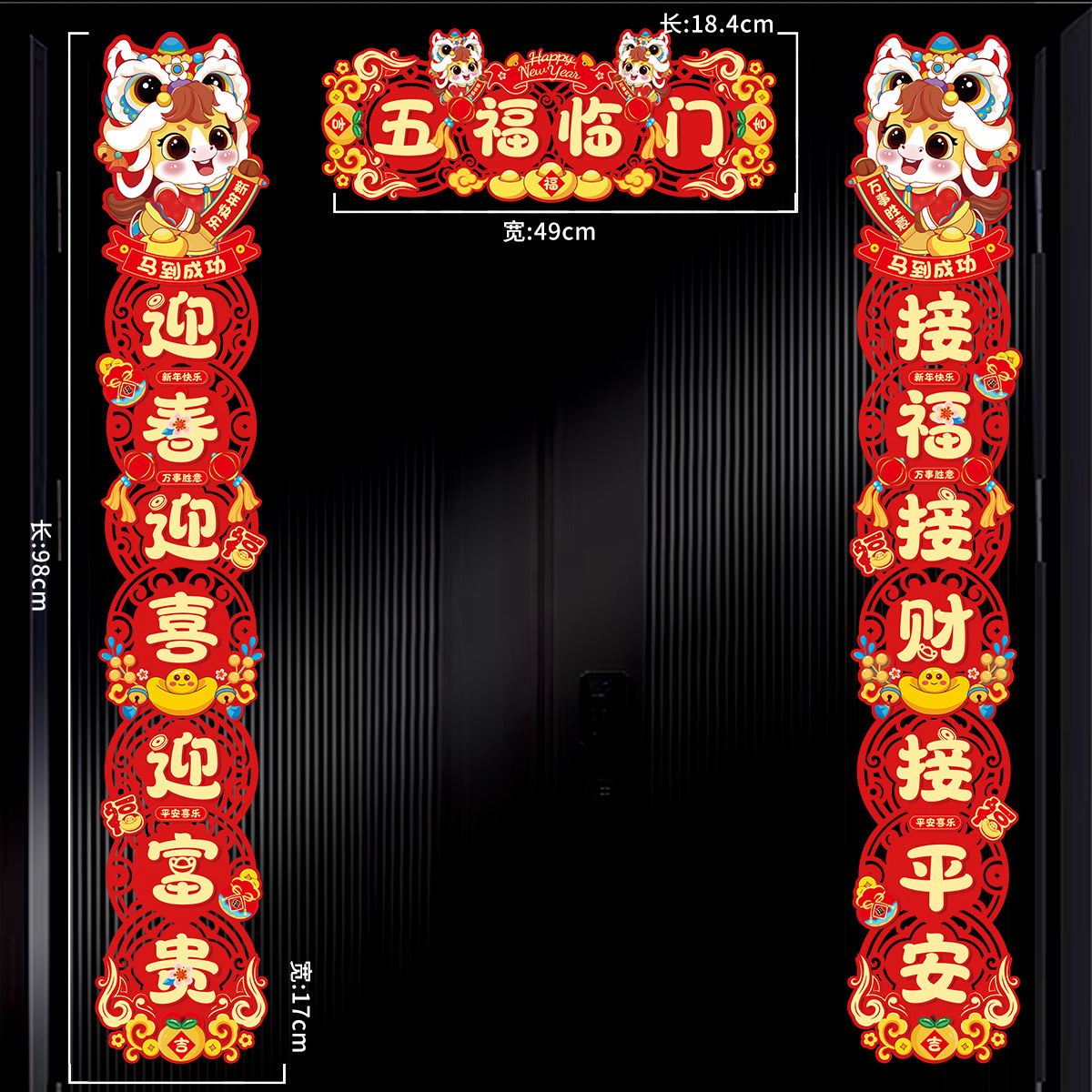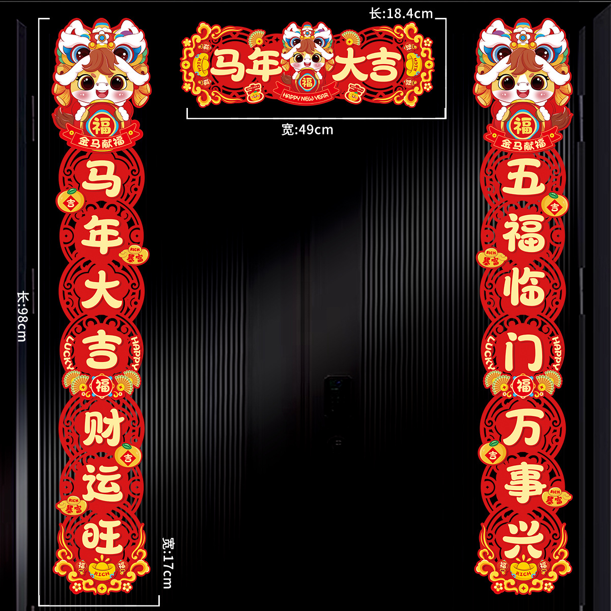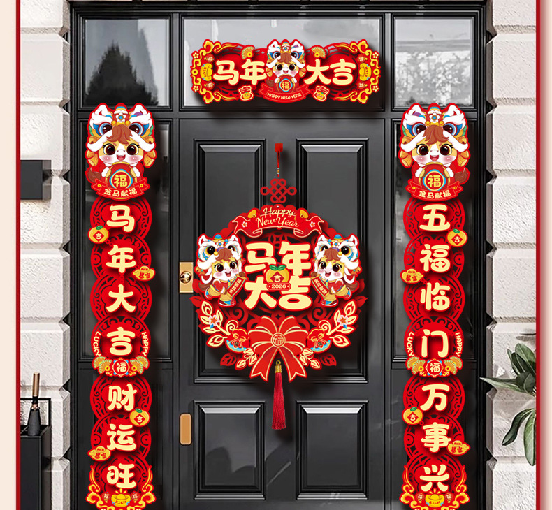 对联2026马年新款春节家用过年大门布置新年门贴装饰植绒磁吸春联