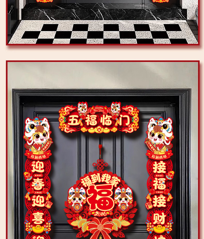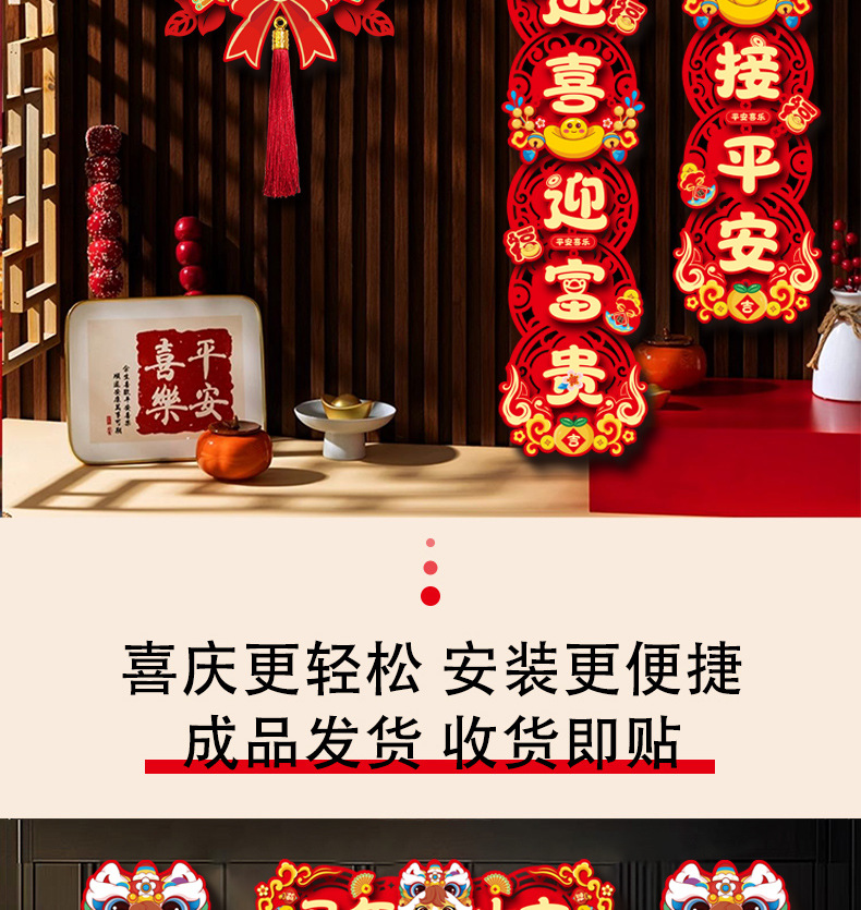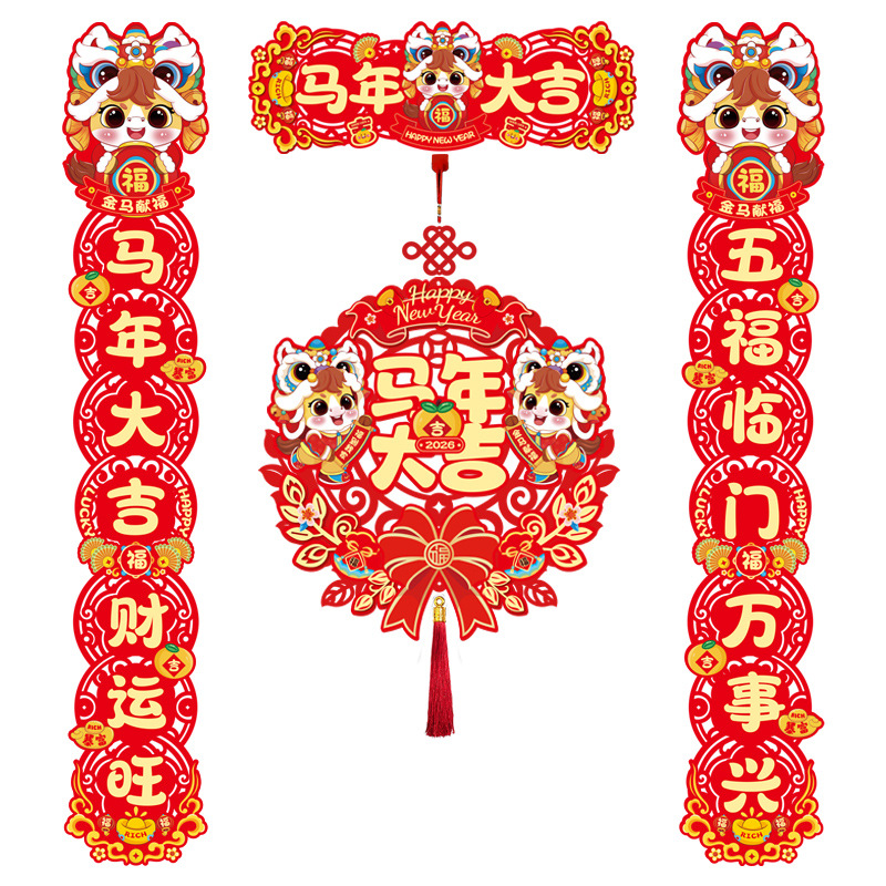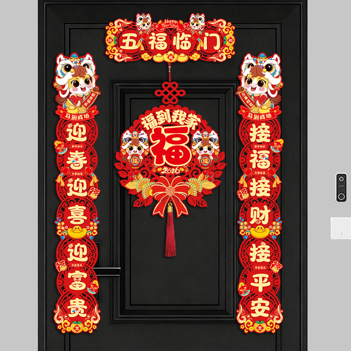 对联2026马年新款春节家用过年大门布置新年门贴装饰植绒磁吸春联