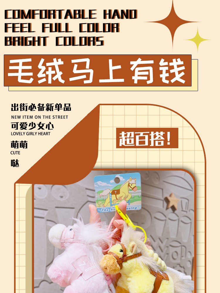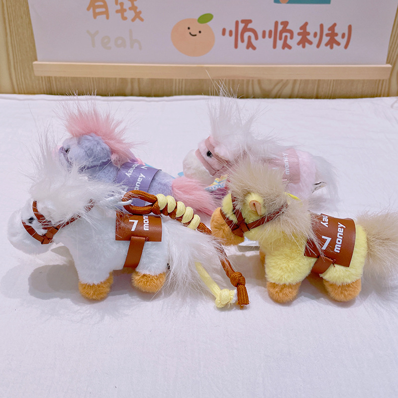 可爱小马公仔挂件马上有钱钥匙扣毛绒玩偶创意马年吉祥物娃娃批发