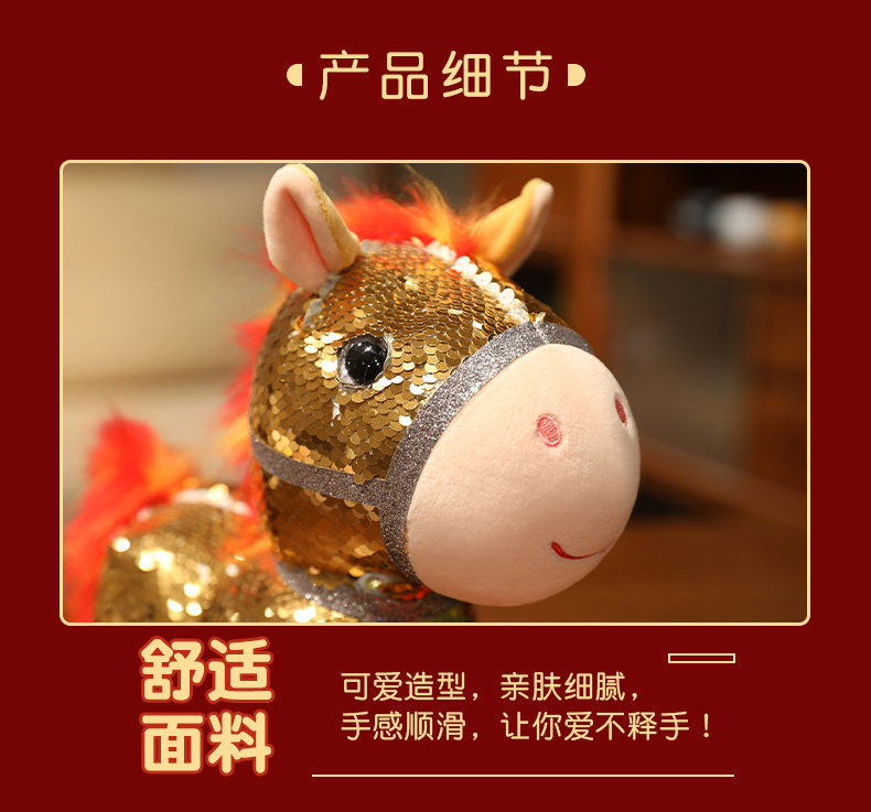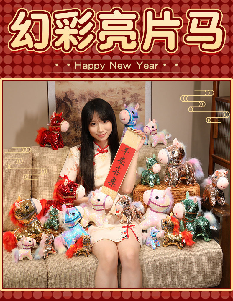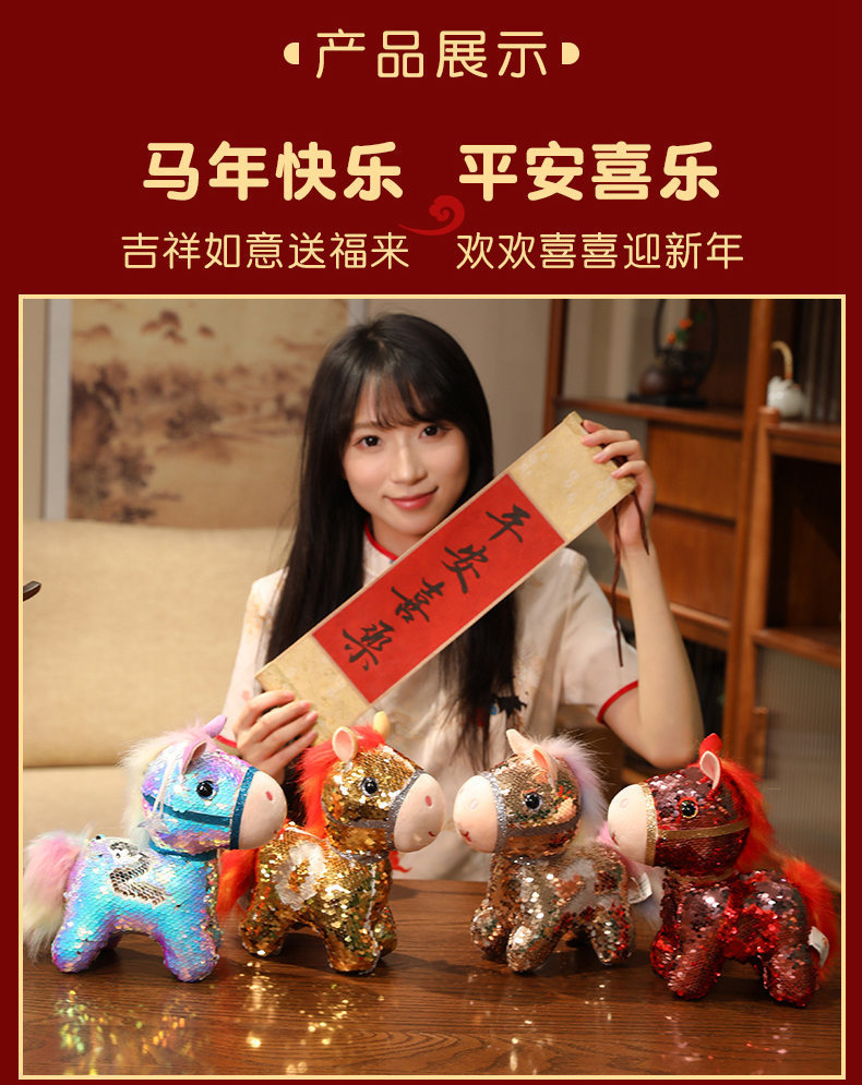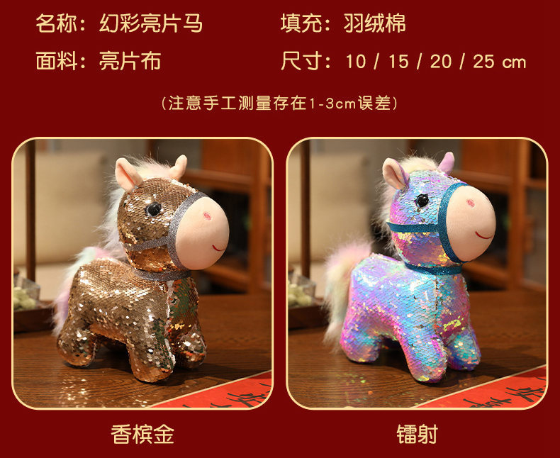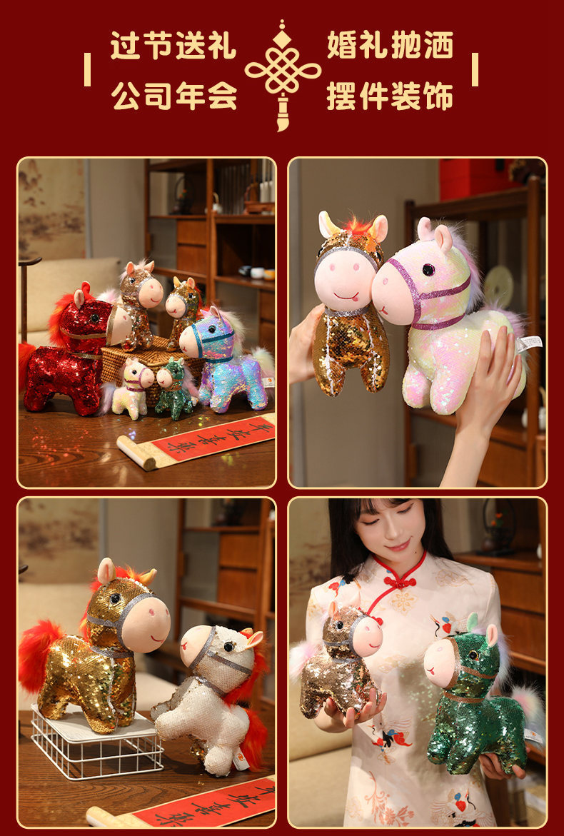 幻彩亮片马公仔马年吉祥物新年挂件玩偶毛绒玩具生肖马直销可代发