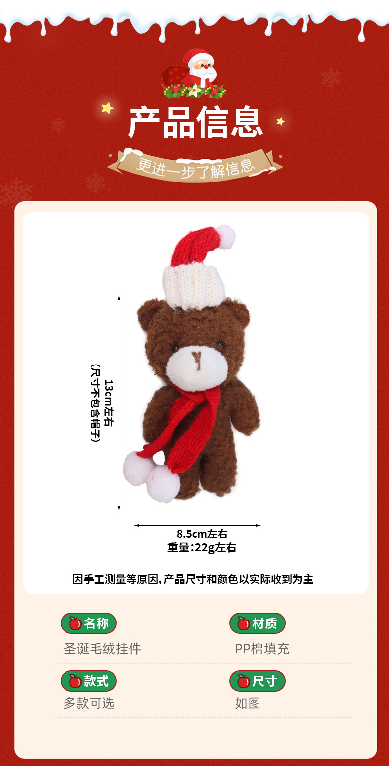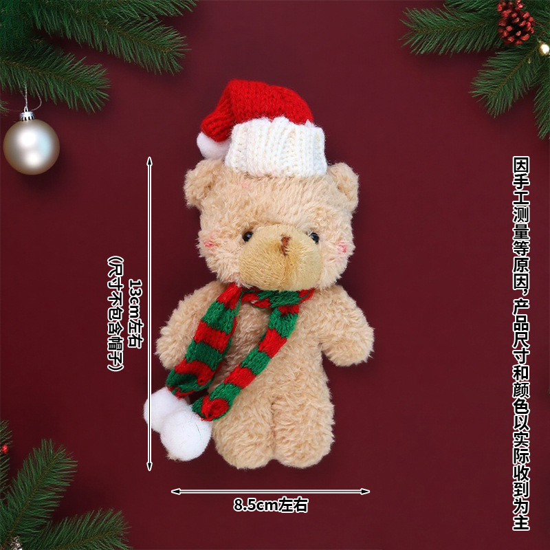 圣诞节可爱腮红围巾毛绒玩偶娃娃连体小熊钥匙扣挂饰挂件公仔礼品