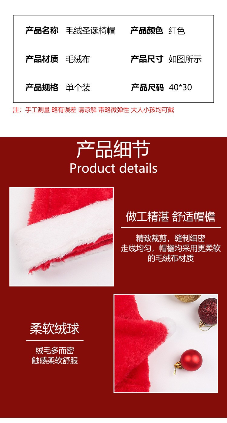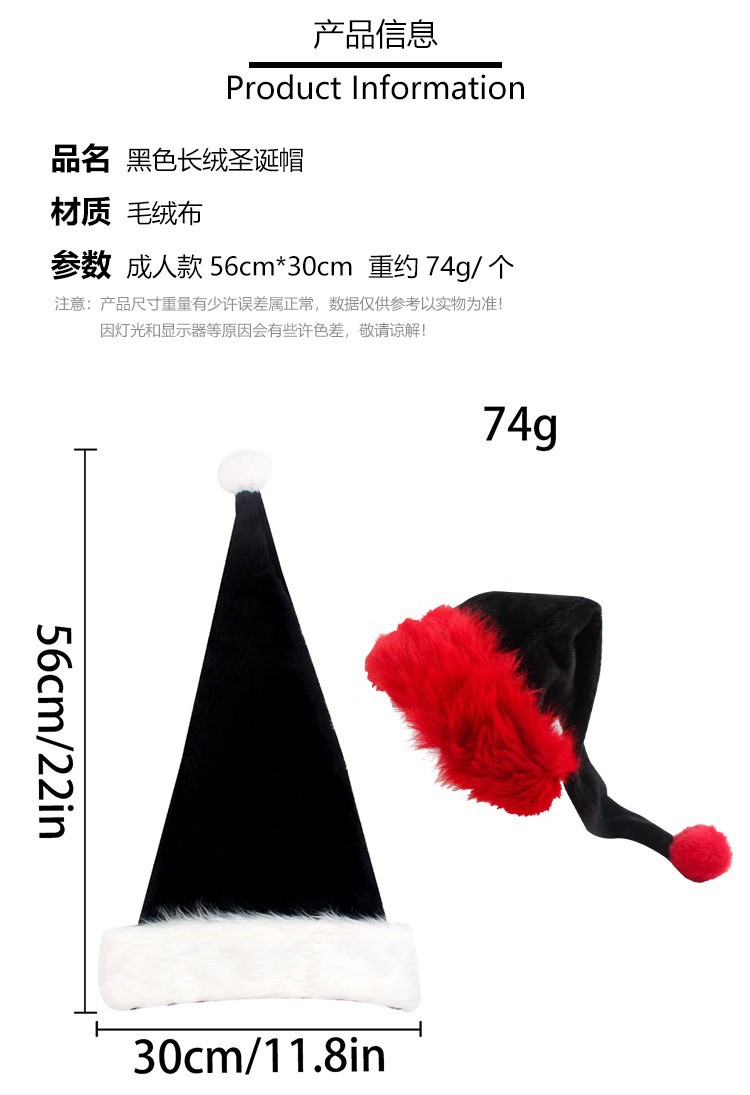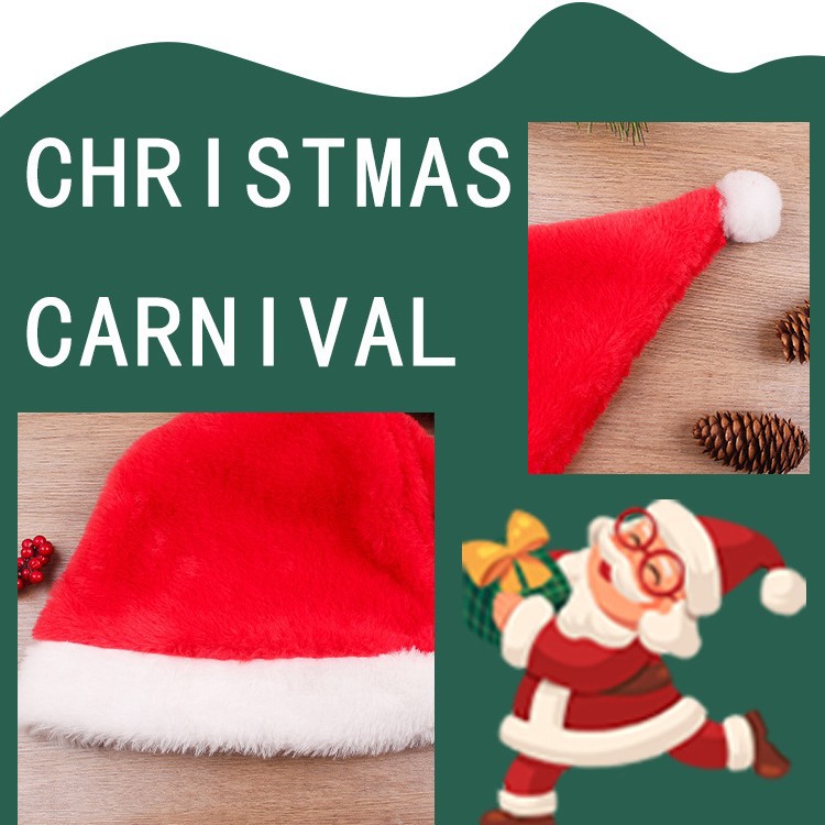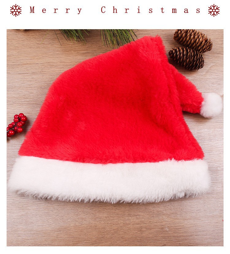 跨境圣诞节装饰品 圣诞派对成人毛绒圣诞帽 节庆氛围装饰用品现货