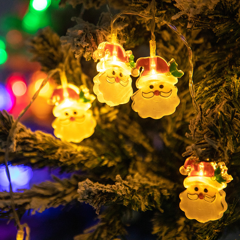跨境圣诞树圣诞老人雪人电池盒led灯串电镀球星星节日装饰灯批发