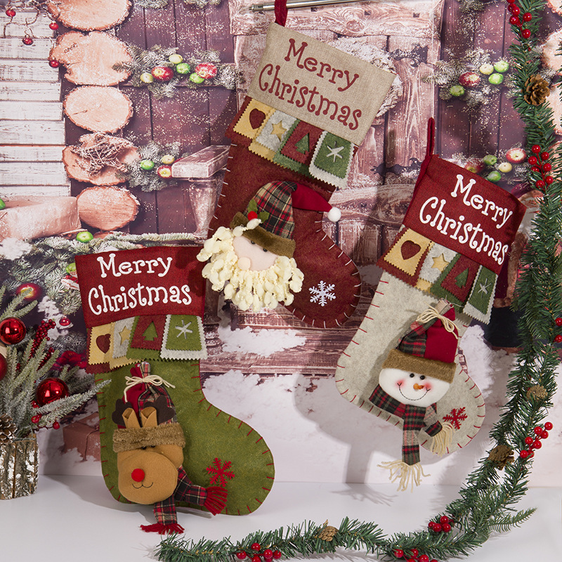 跨境新款圣诞节装饰用品高档卡通圣诞袜立体老人礼物袜装饰袜挂件
