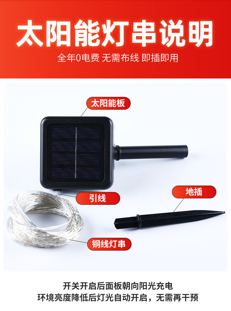 | [eight functions] solar copper wire lamp 32 m 300 lights(【八功能】太阳能铜线灯32米300灯) | USD $4.6 | 98666 piece available |