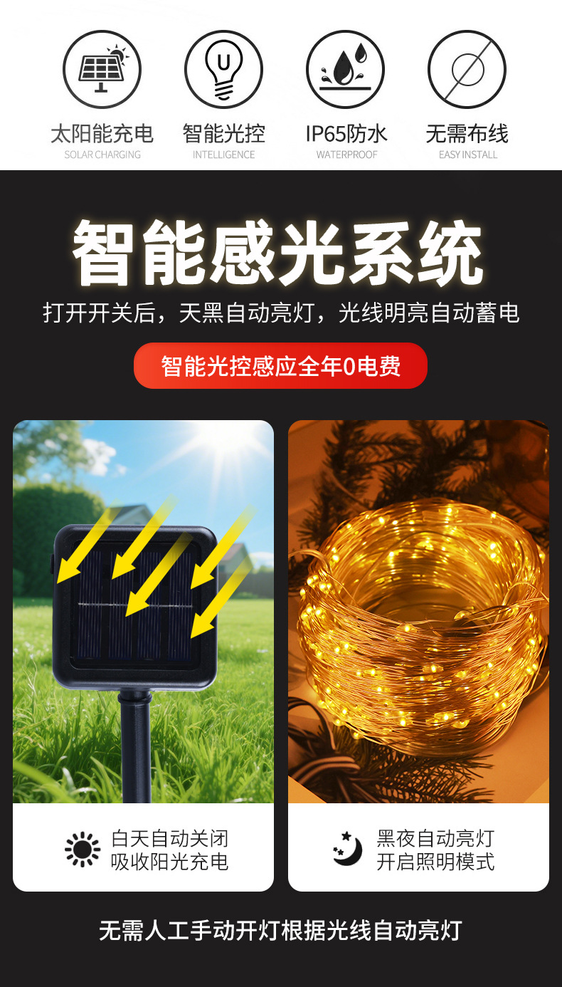 led太阳能铜线灯串户外防水挂树装饰满天星圣诞节日氛围庭院彩灯