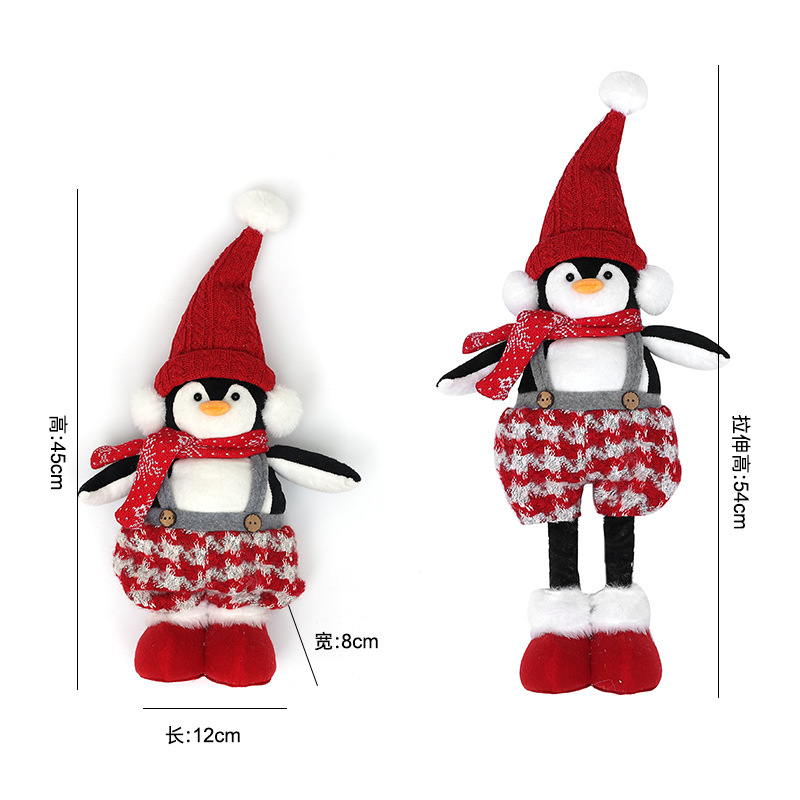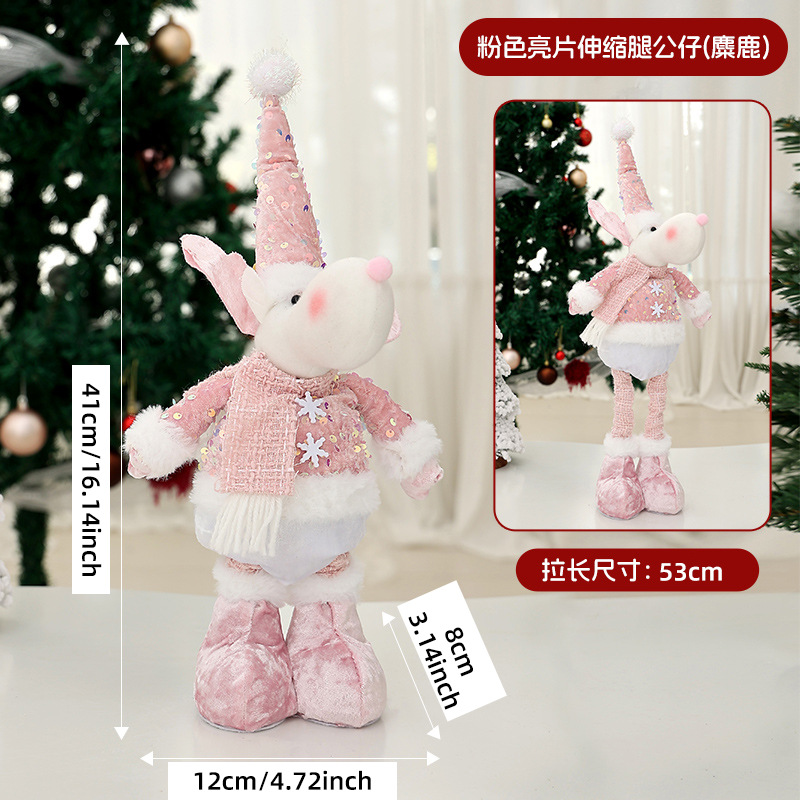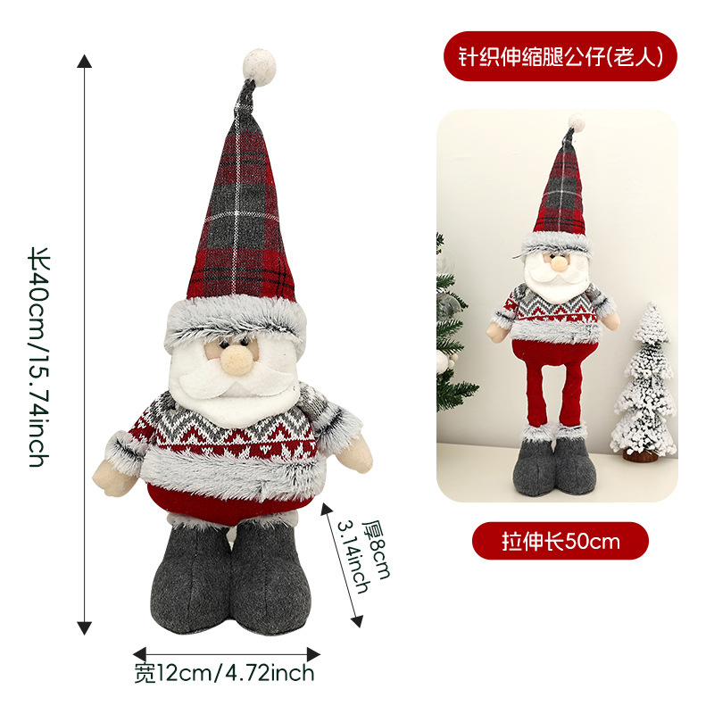 新款圣诞节雪人麋鹿娃娃装饰用品可伸缩腿公仔高档针织帽橱窗摆件
