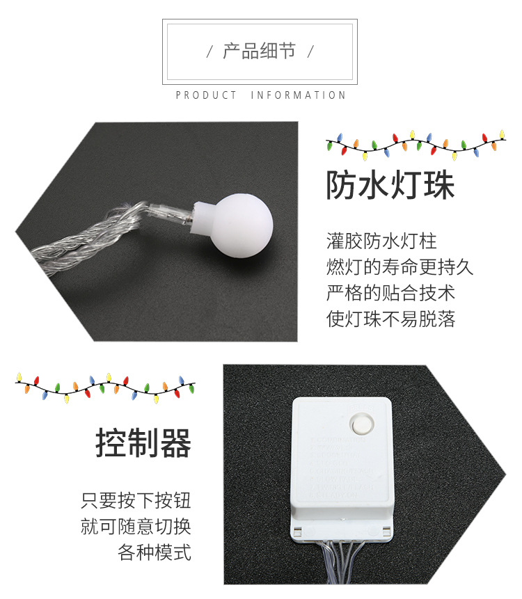 | 50 lights 7.5 m battery with flash + always on(50灯7.5米电池款带闪+常亮) | USD $1.66 | 996 piece available |