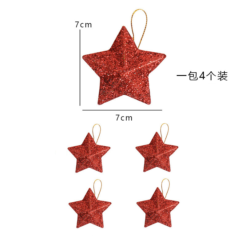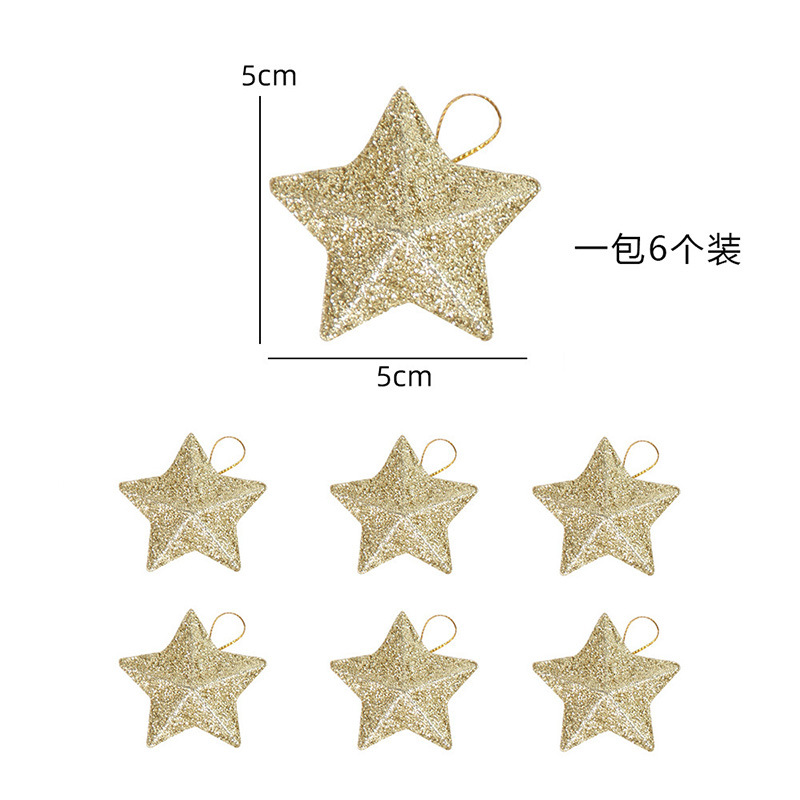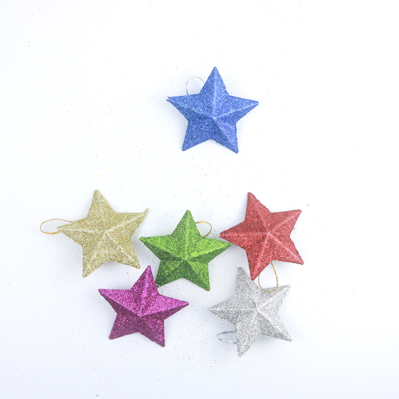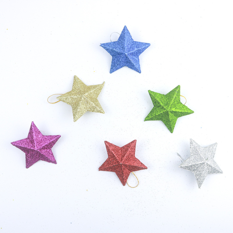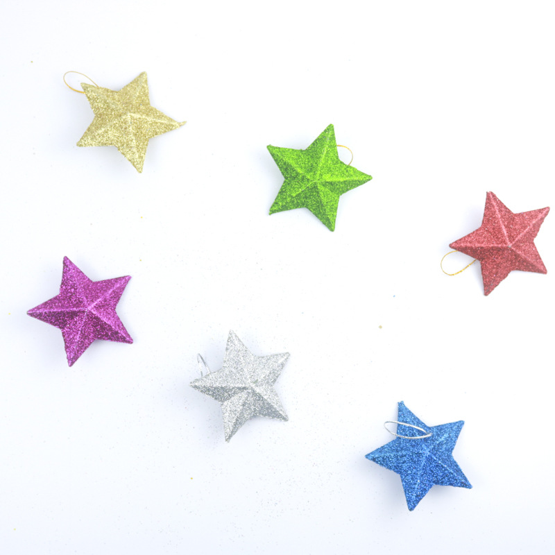跨境圣诞金粉五角星挂件圣诞五星挂饰圣诞节装饰品立体塑料星星