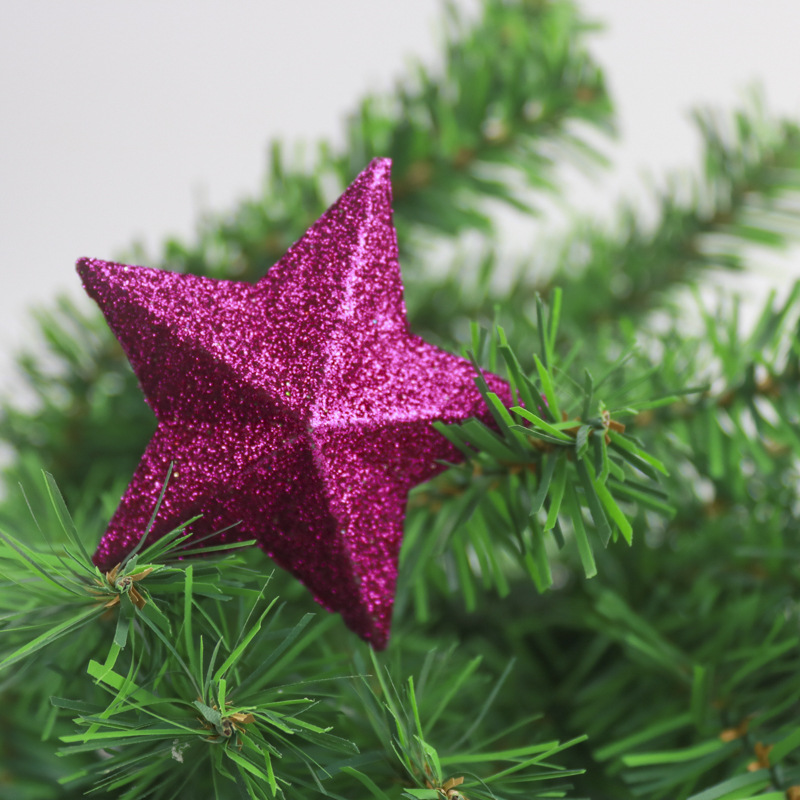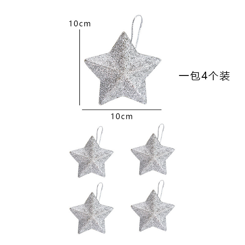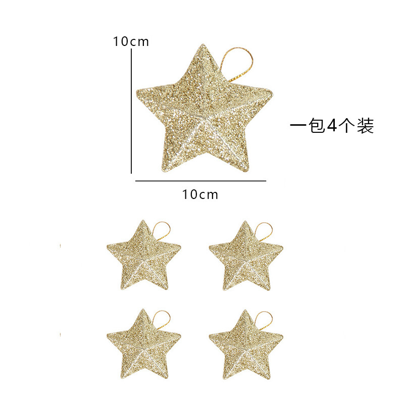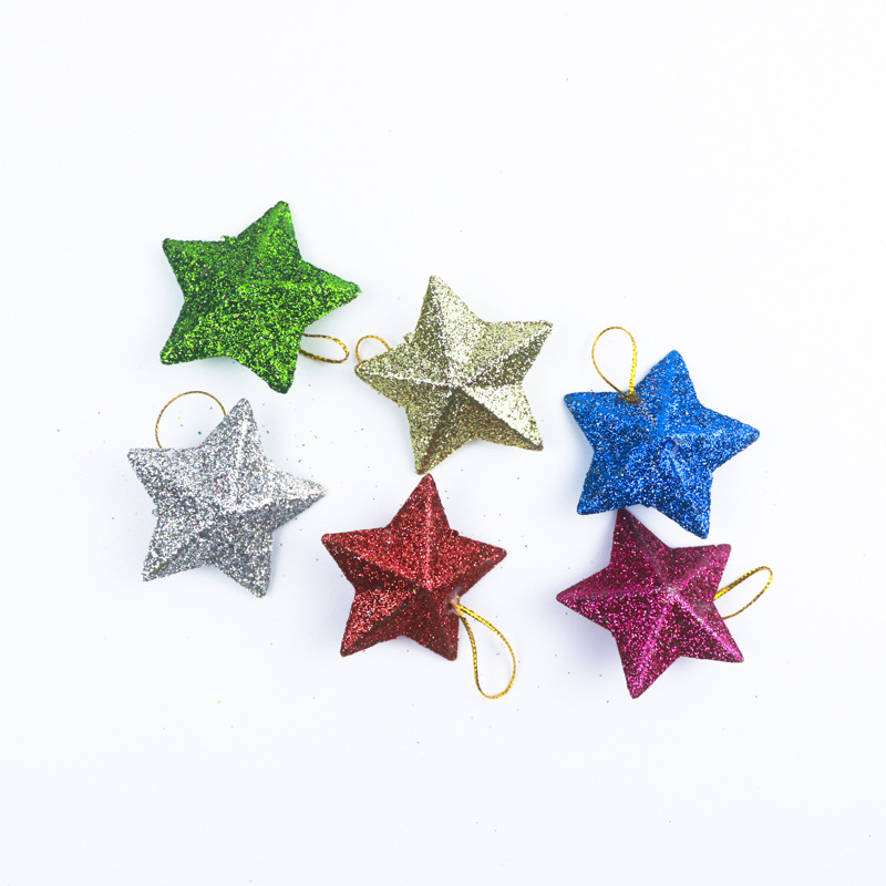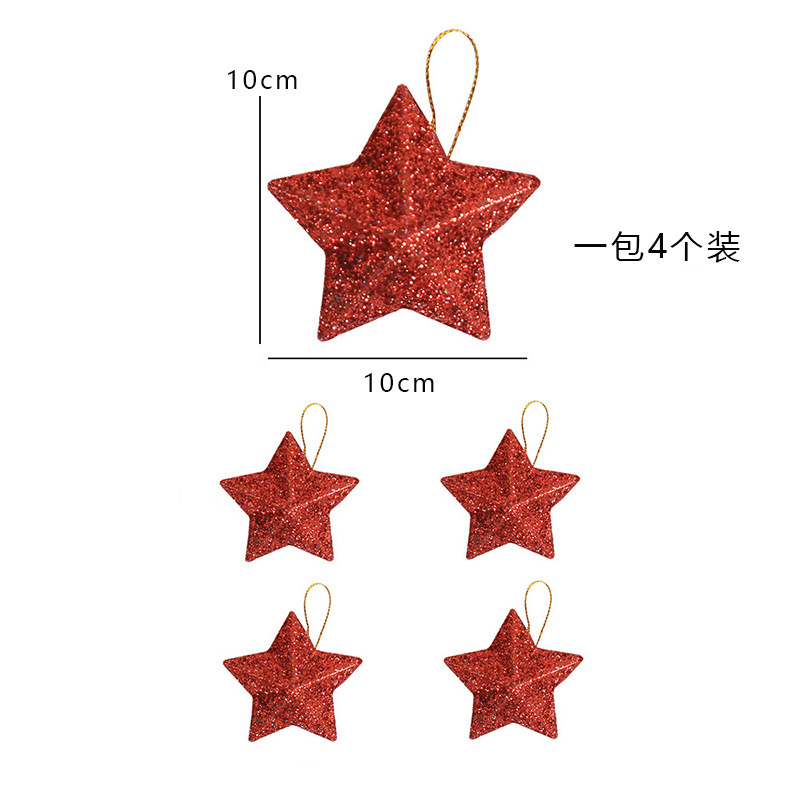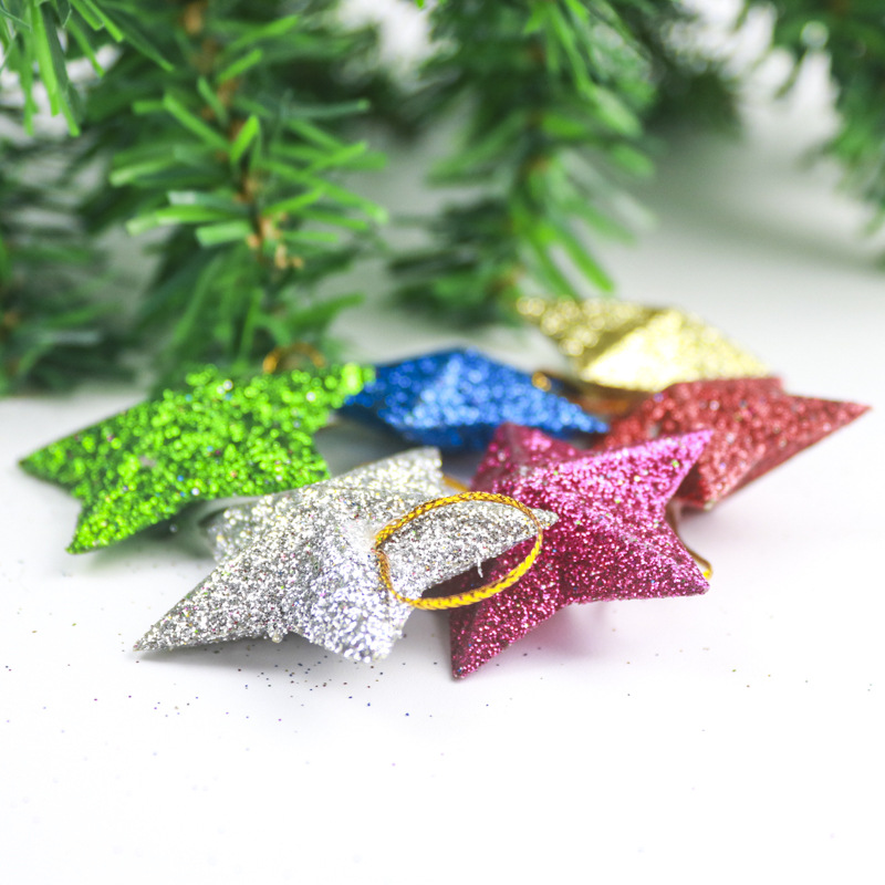 跨境圣诞金粉五角星挂件圣诞五星挂饰圣诞节装饰品立体塑料星星
