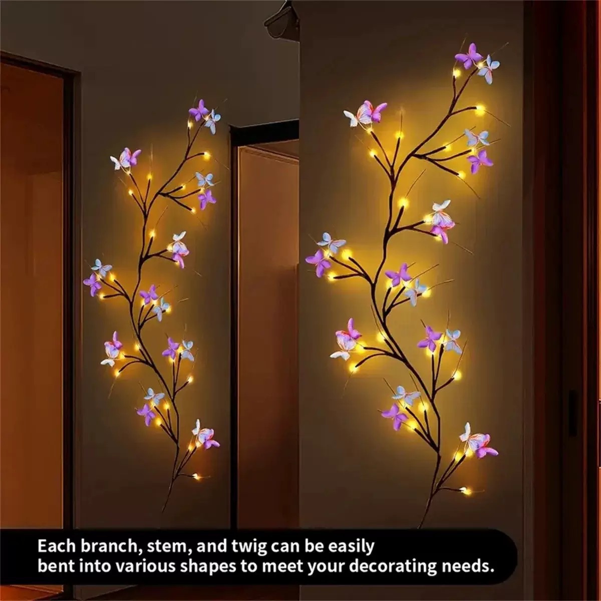 跨境新款LED藤条灯圣诞节室内墙面装饰氛围可弯曲造型仿真树枝灯