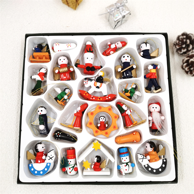 圣诞节装饰品圣诞礼盒装套装24个木质玩偶公仔圣诞树挂饰用品