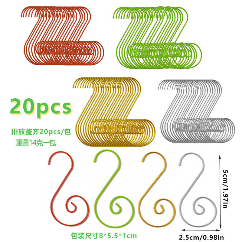 厂家爆款圣诞节装饰挂钩圣诞树礼物S钩袜子圣诞球吊钩场地布置花