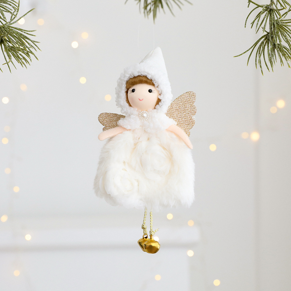 绣花裙子小女孩娃娃天使挂件圣诞树挂件配饰毛绒圣诞公仔装饰品