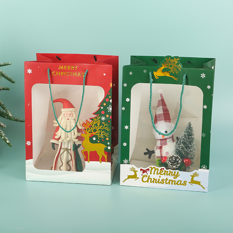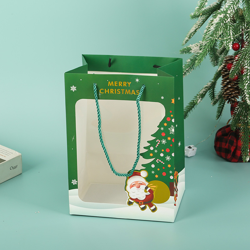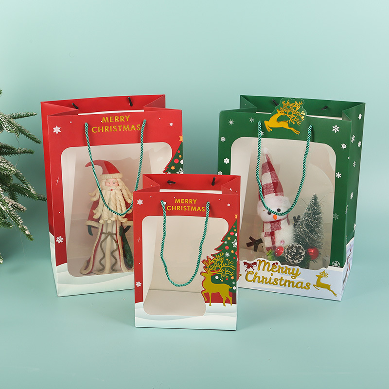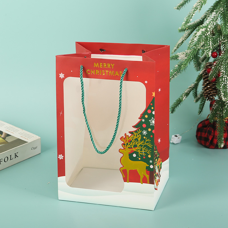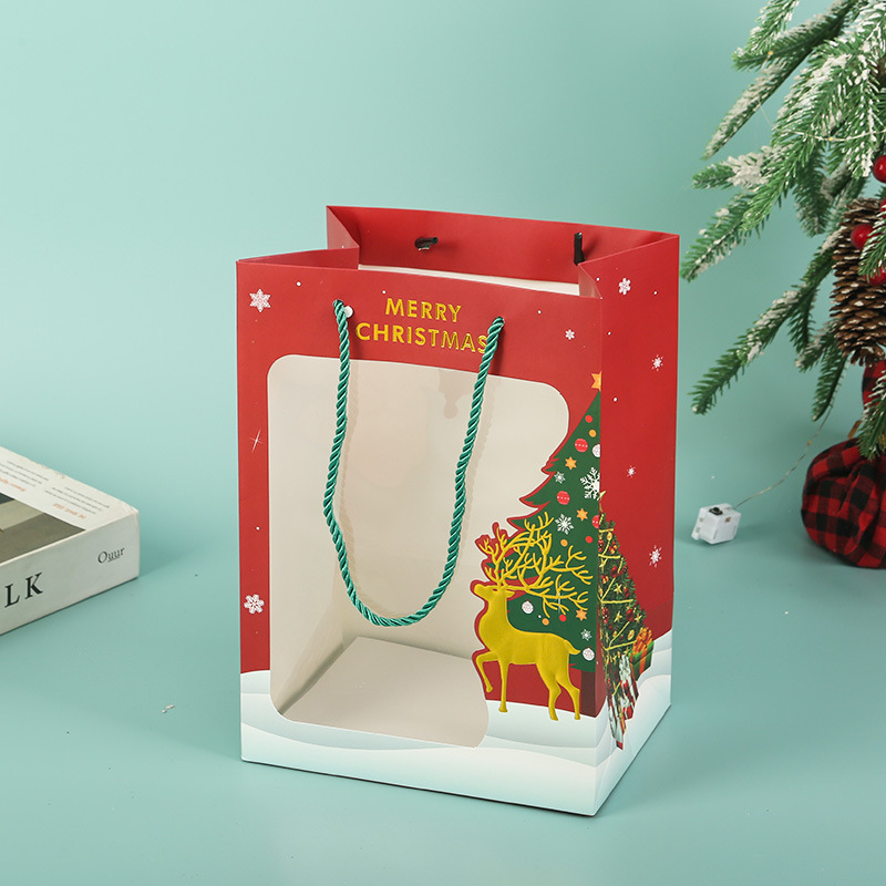 2025网红圣诞透明开窗手提袋苹果礼品袋平安夜活动礼物包装袋子
