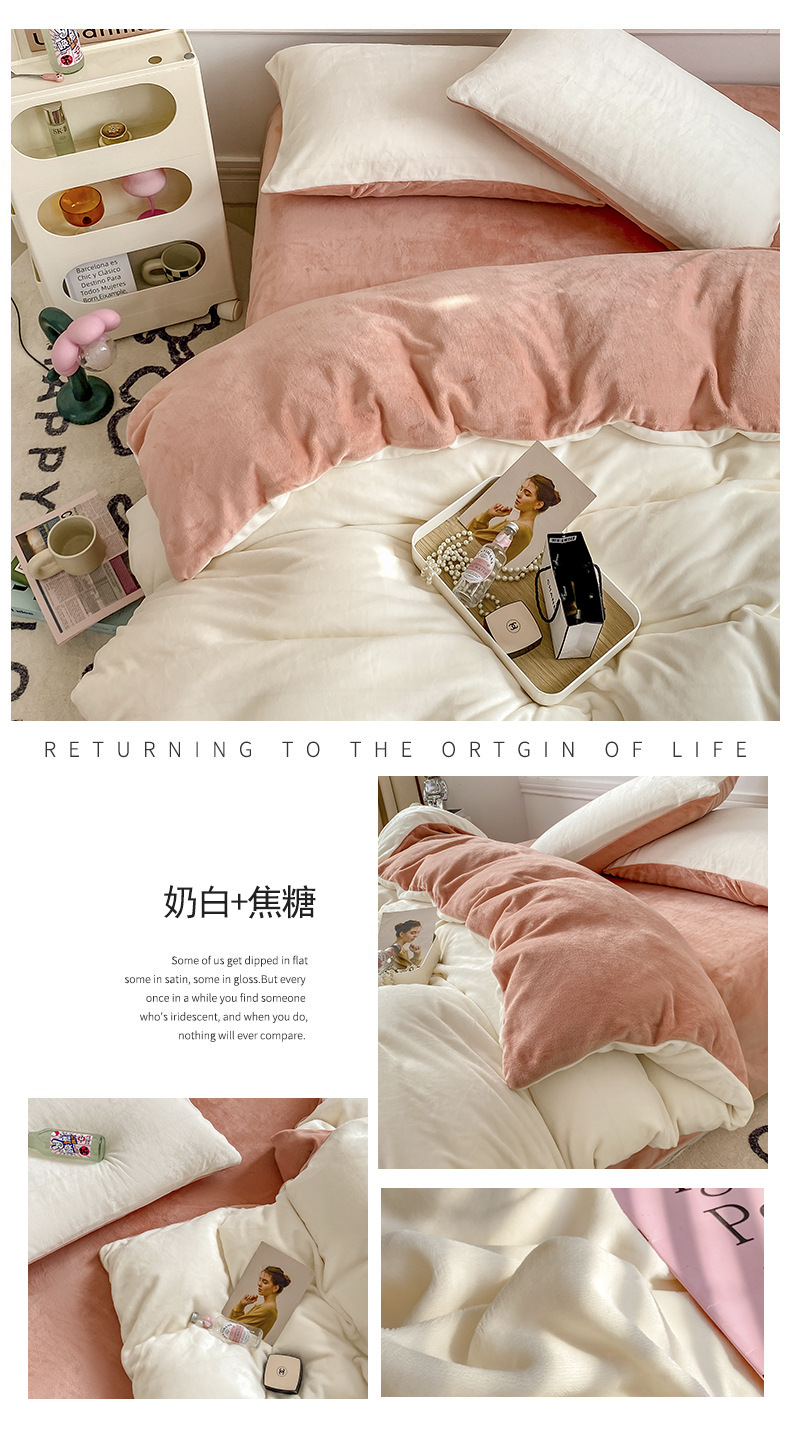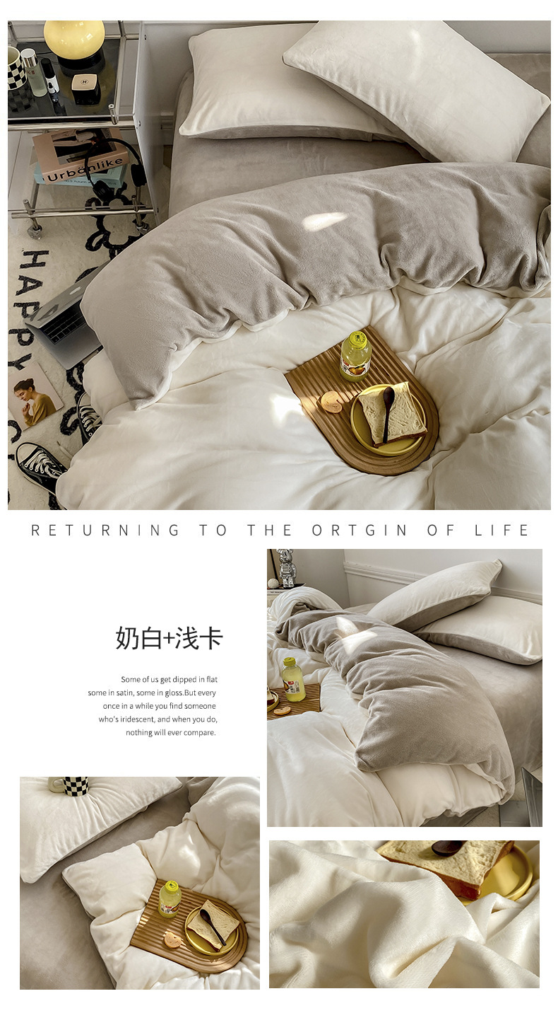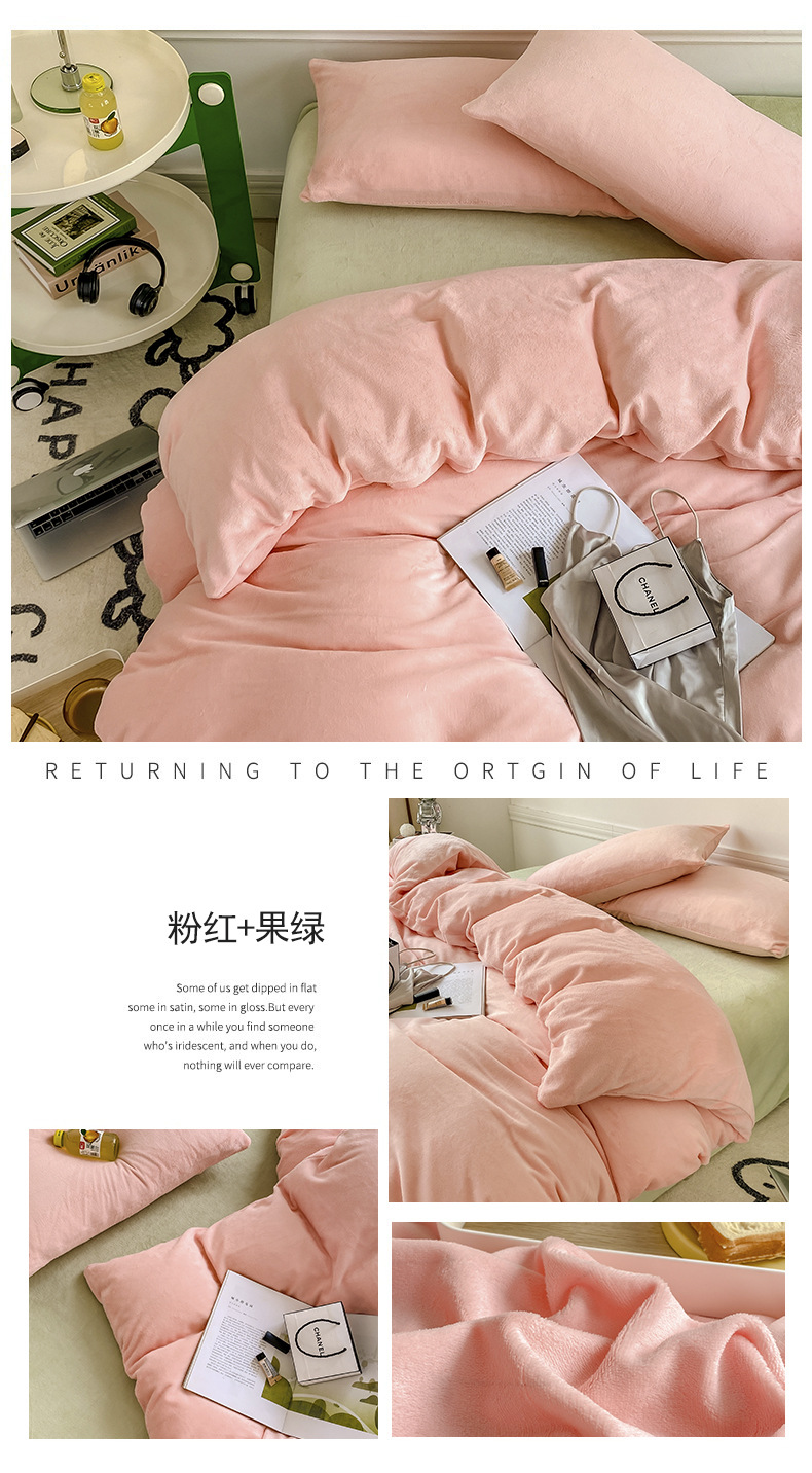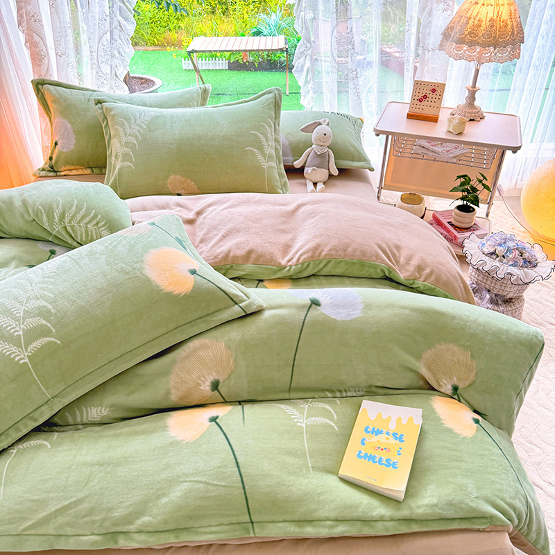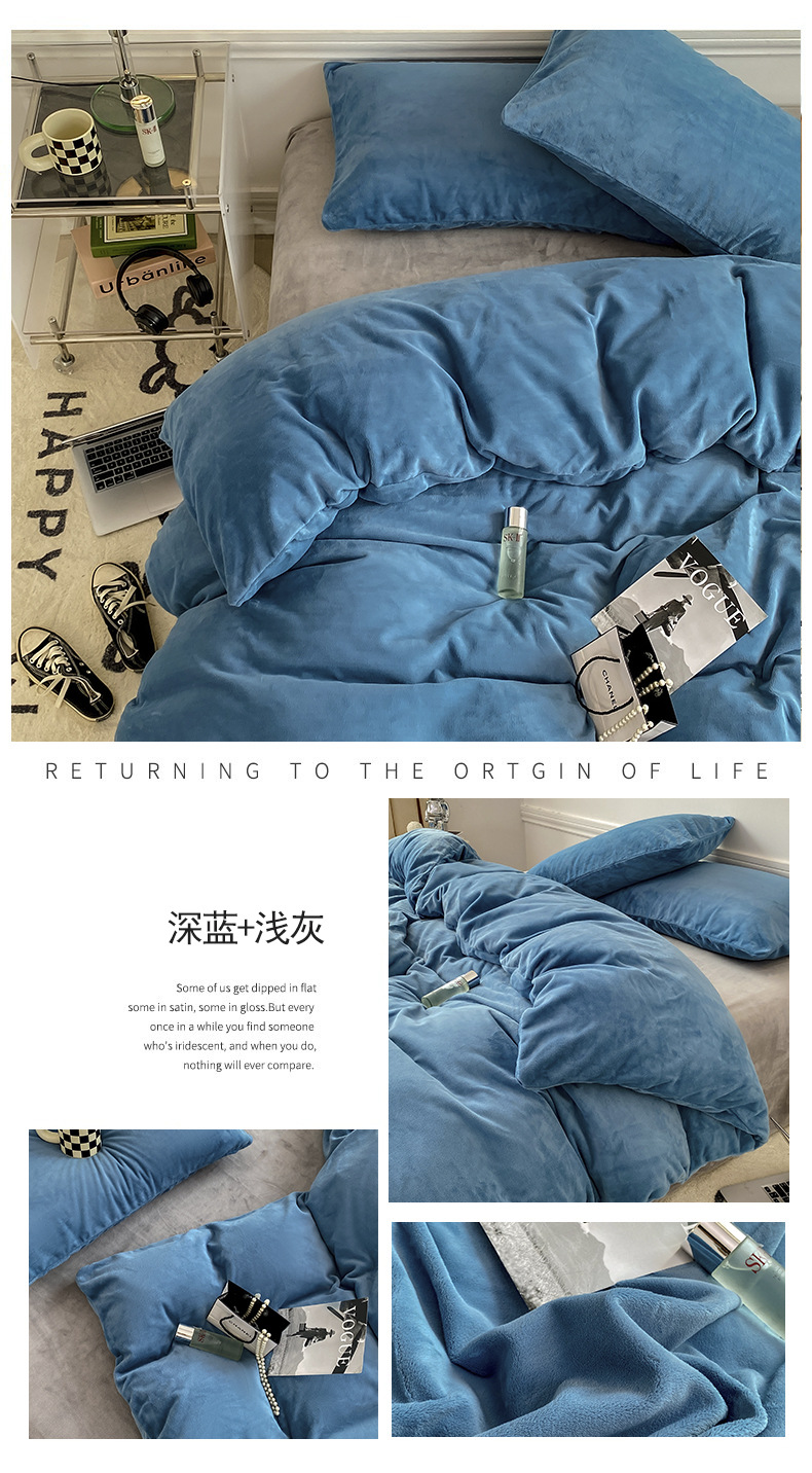 ins加厚牛奶绒A类四件套冬季法兰绒珊瑚绒被套被罩床笠宿舍三件套