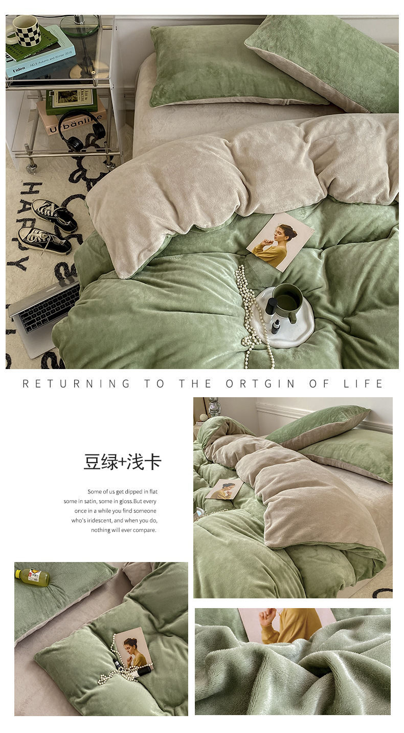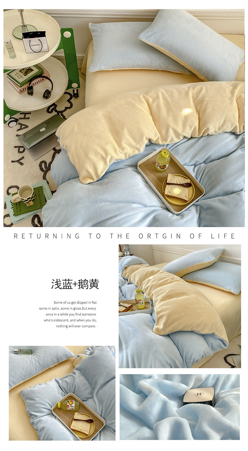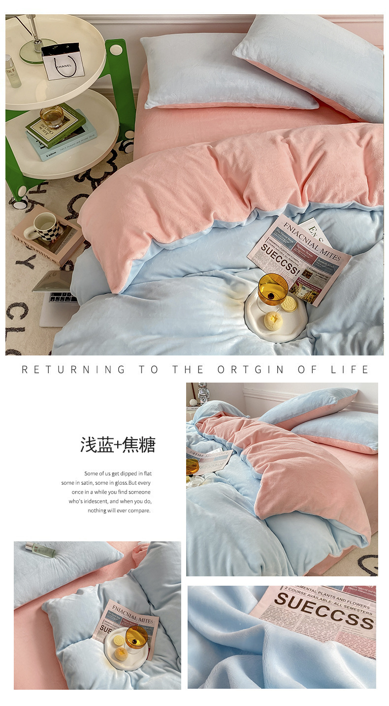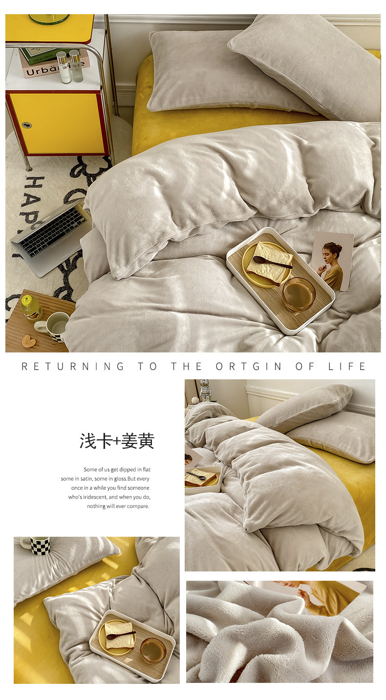 ins加厚牛奶绒A类四件套冬季法兰绒珊瑚绒被套被罩床笠宿舍三件套
