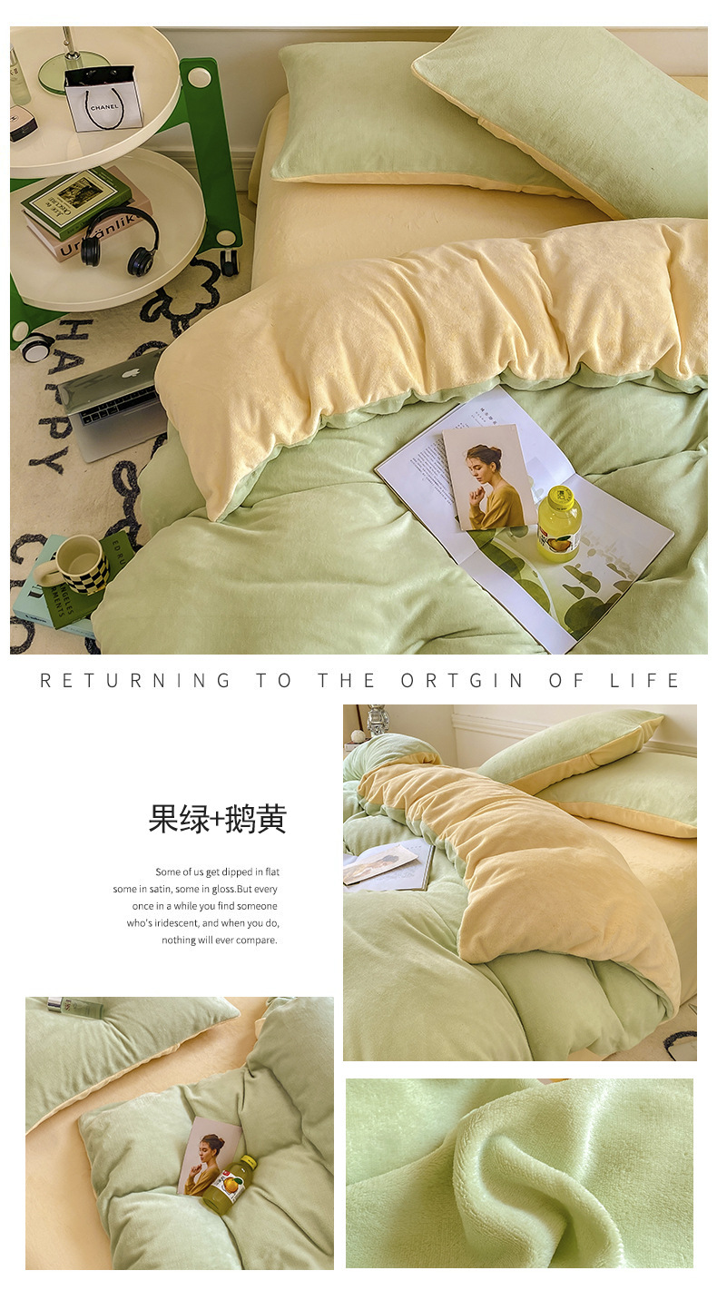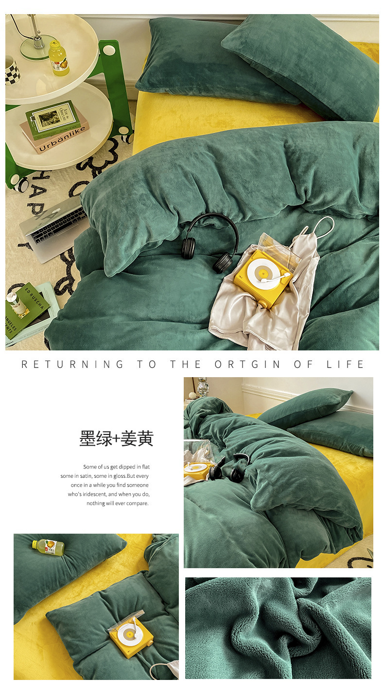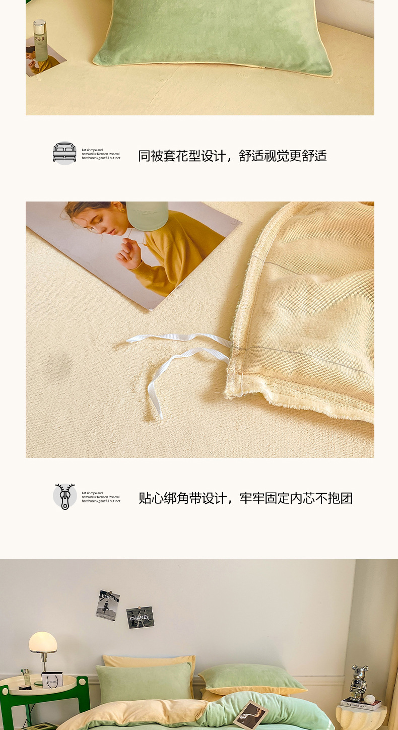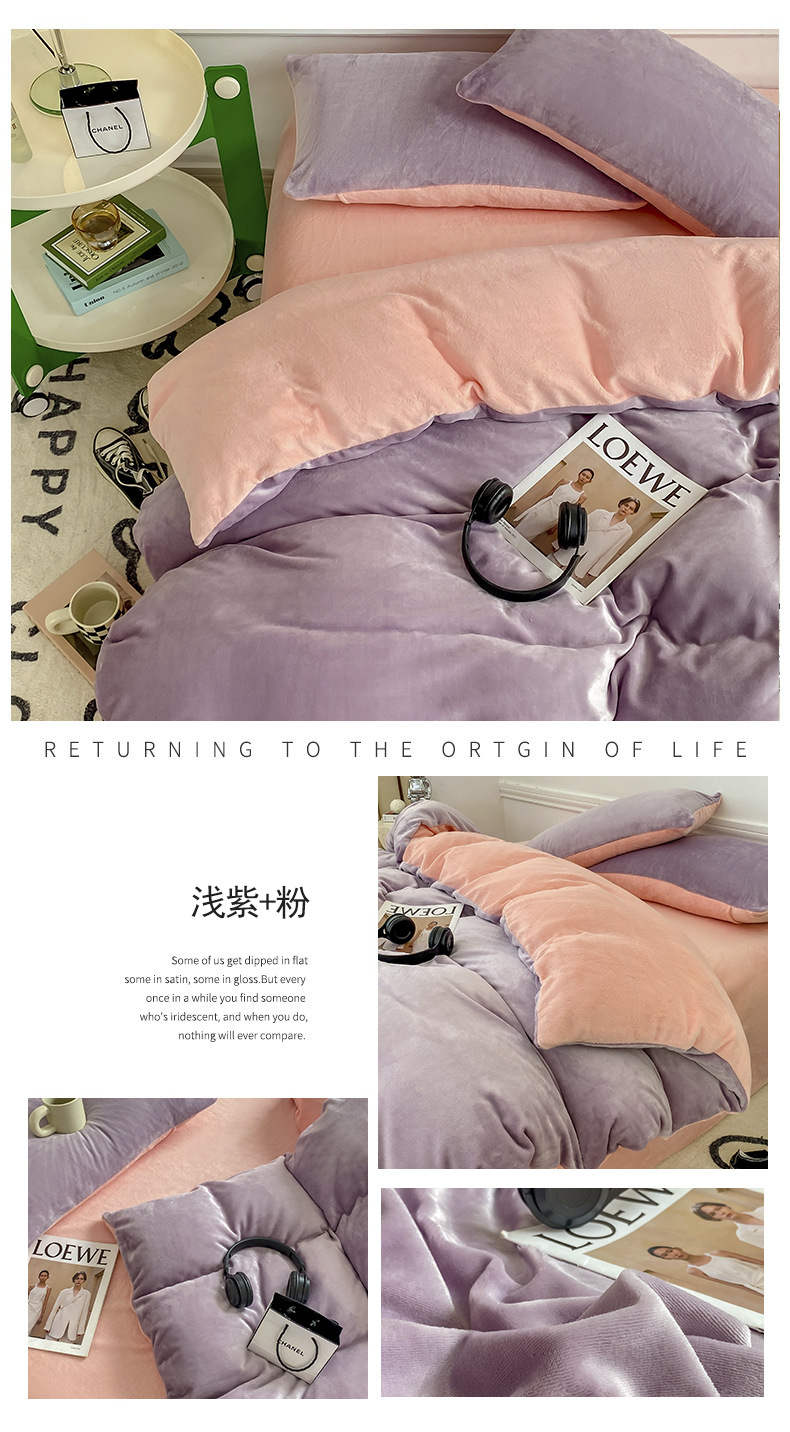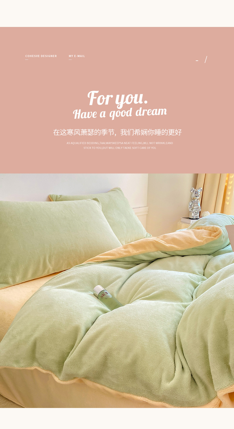 ins加厚牛奶绒A类四件套冬季法兰绒珊瑚绒被套被罩床笠宿舍三件套